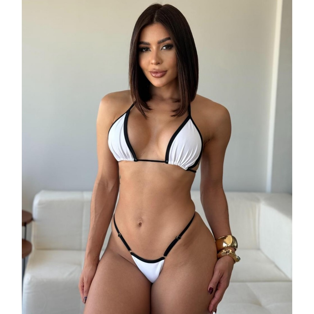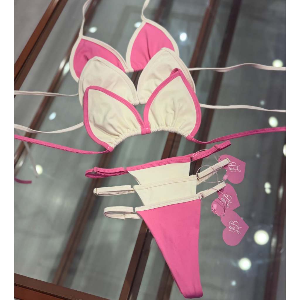 biquíni feminino fita bronze verão 2025 marquinha fio dental ajustavel bicolor com regulagem tendência Bikini