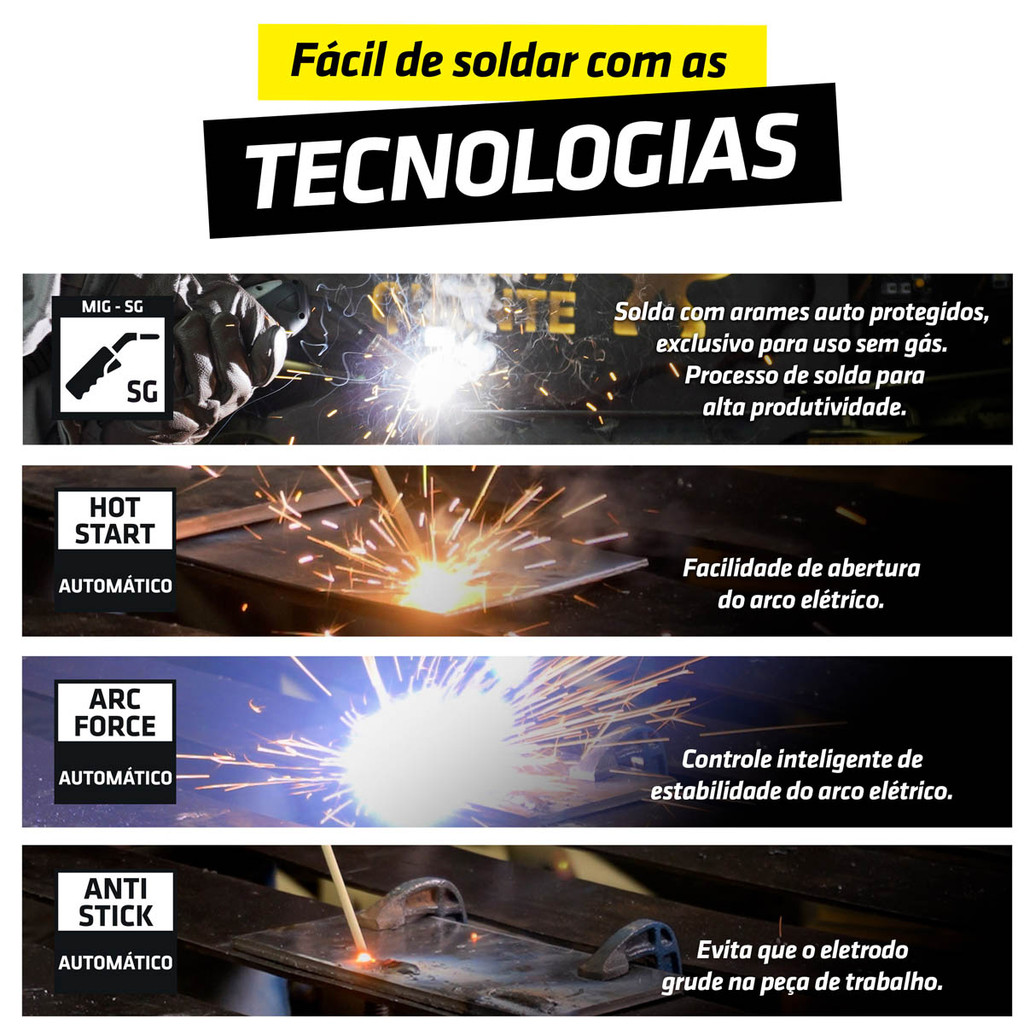 Maquina Inversor de Solda 3x1 Mig Sem Gás Tig e MMA 140A Bivolt com Arame Esquadro 30Kg Super Tork