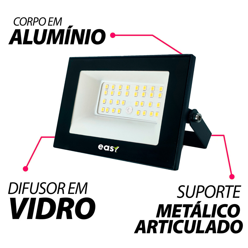 Refletor Led 50W Luz Branco Frio 6500K Bivolt 127/220v Iluminação Externa Easy