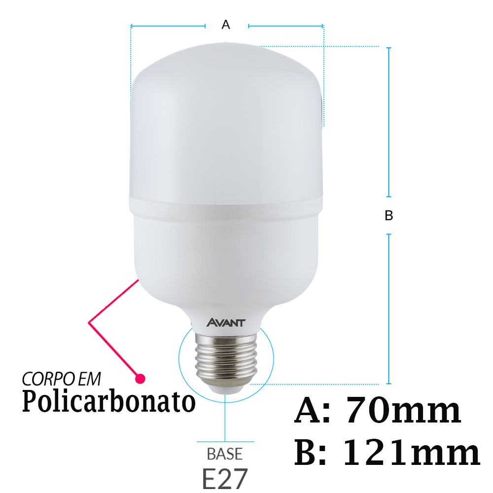 Kit 5 Lâmpada Bulbo Led 20W Luz Branca 6500K Bivolt 127v 220v Soquete E27 Avant