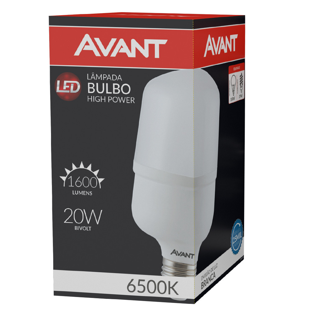 Kit 7 Lâmpada Bulbo Led 20W Luz Branca 6500K Bivolt 127v 220v Soquete E27 Avant