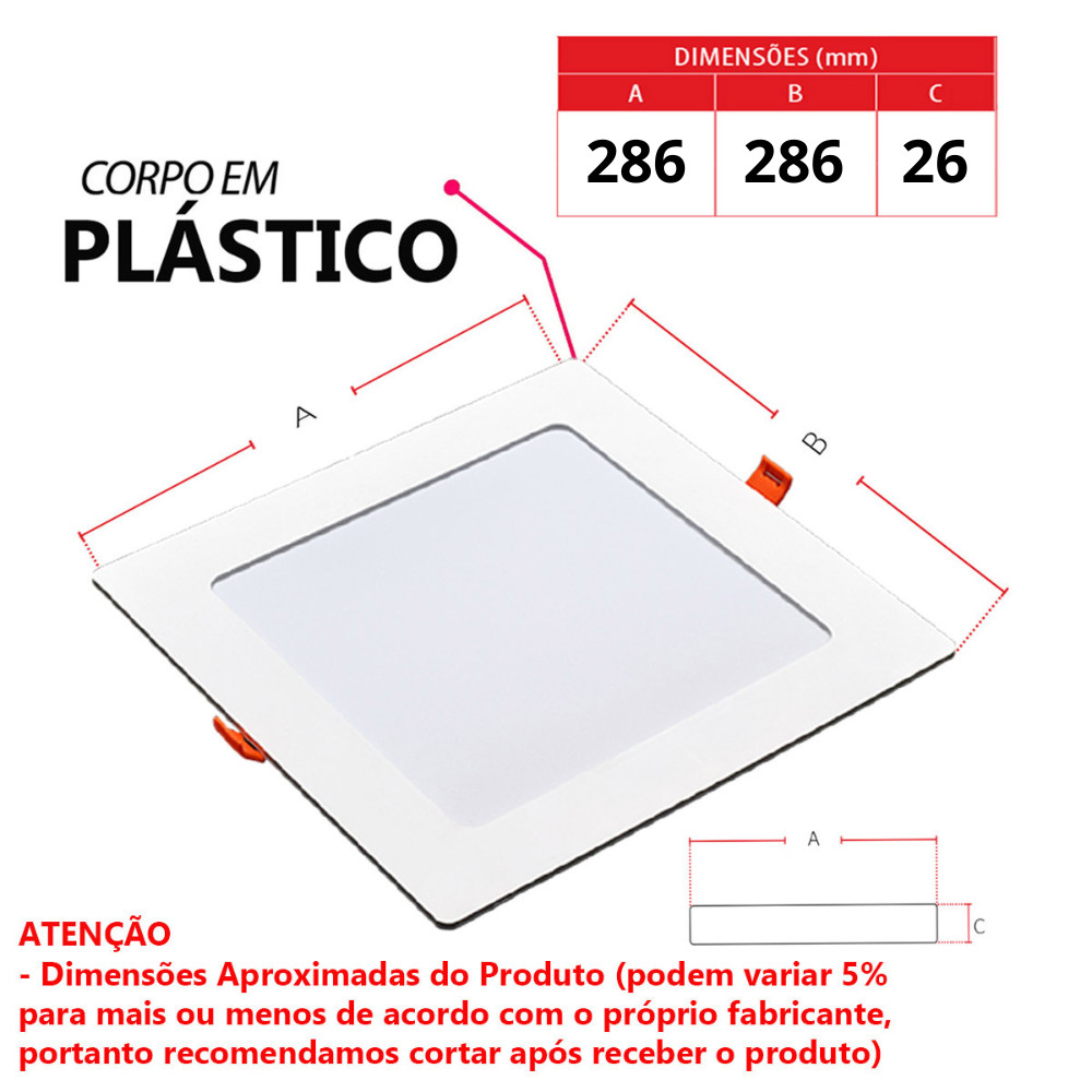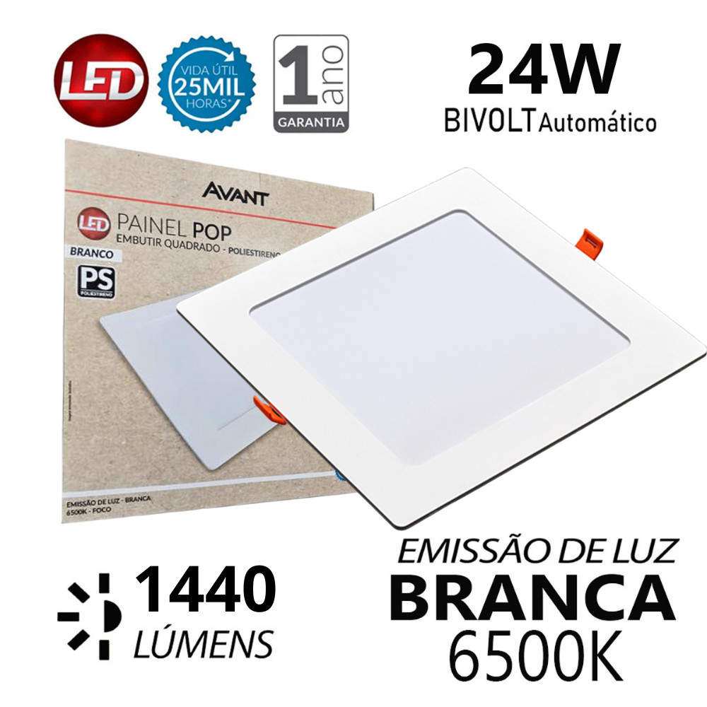 Kit 20 Painel Plafon Quadrado Embutir 24W Luz Branco Frio 6500K Bivolt 127v 20v Avant