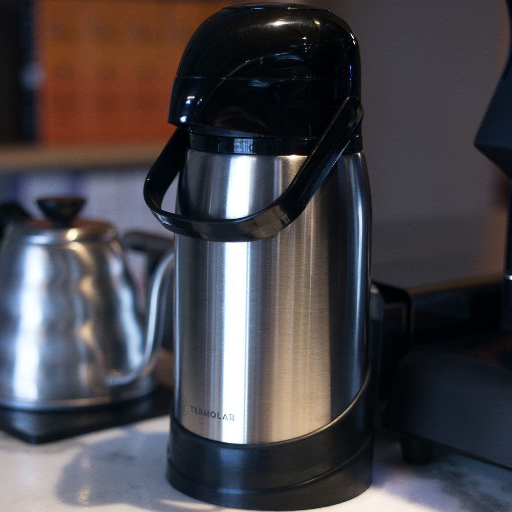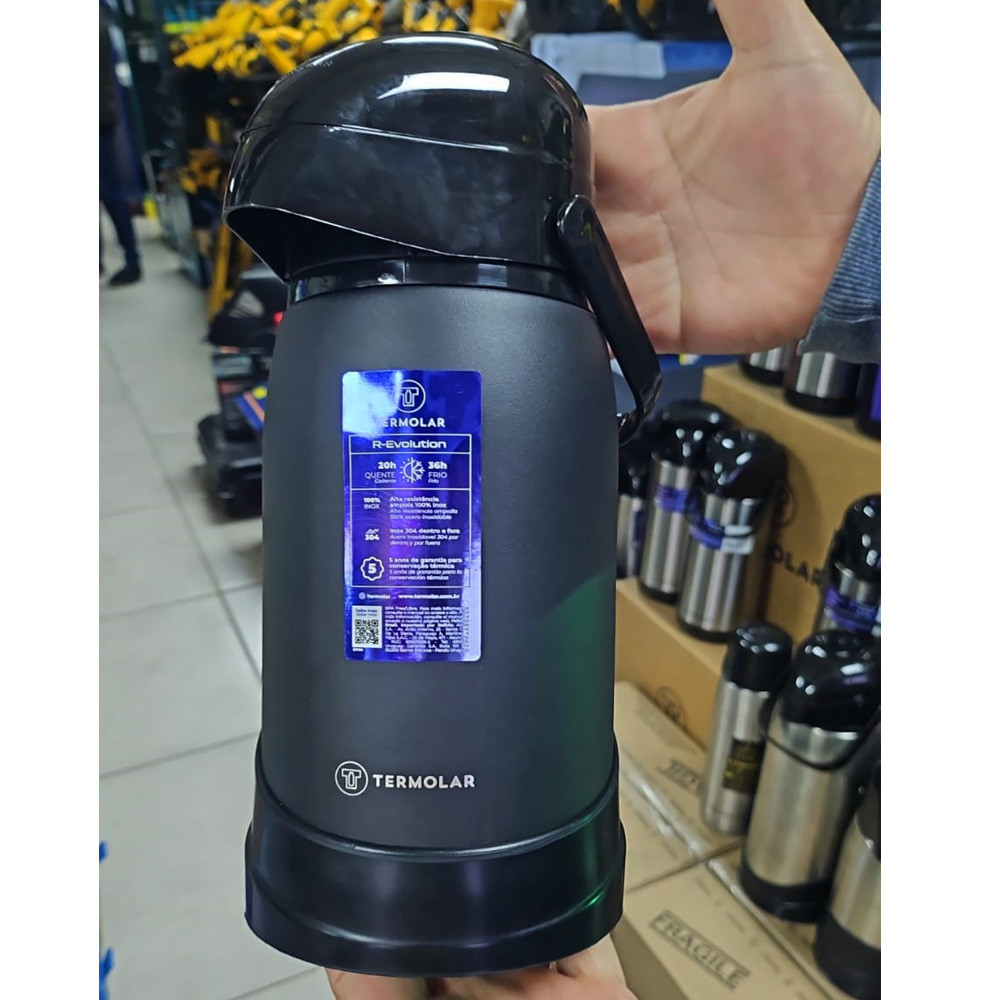 Garrafa Térmica R-Evolution 100% Inox 1.2L Inquebrável Quente até 20 Horas Com Bomba Termolar
