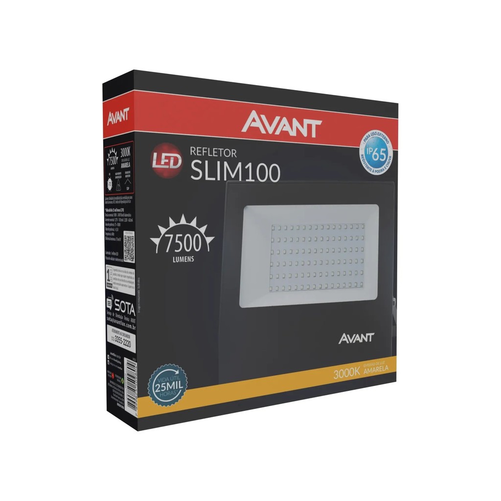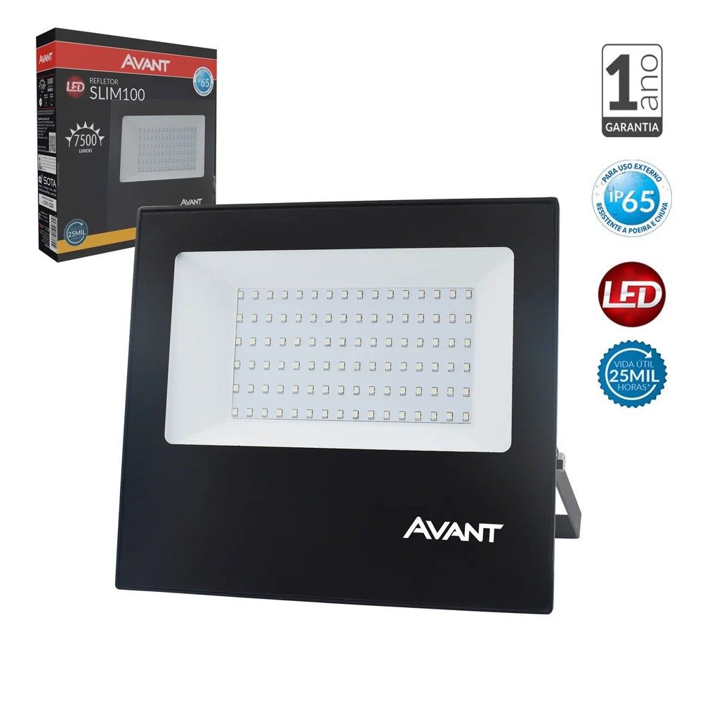 Refletor Led A Prova Dágua Bivolt 100w Luz Amarela Casa Avant