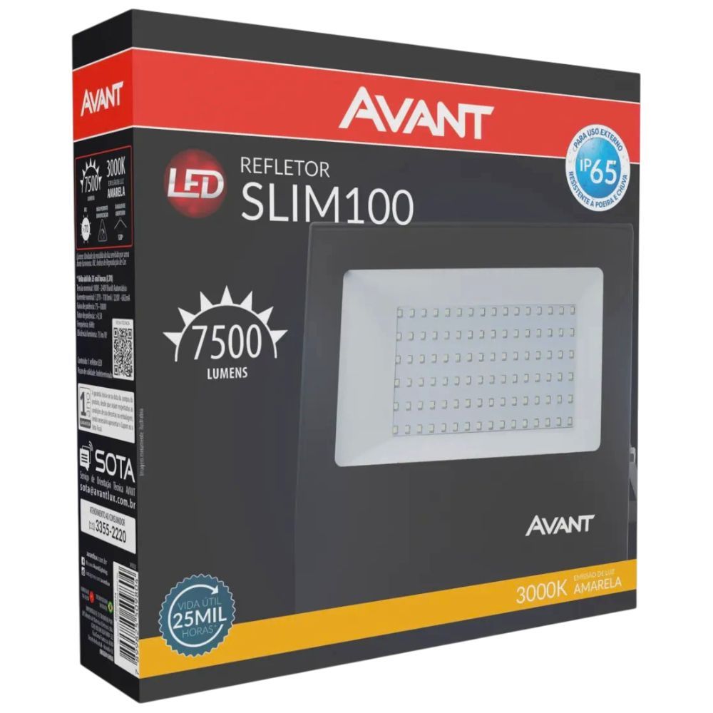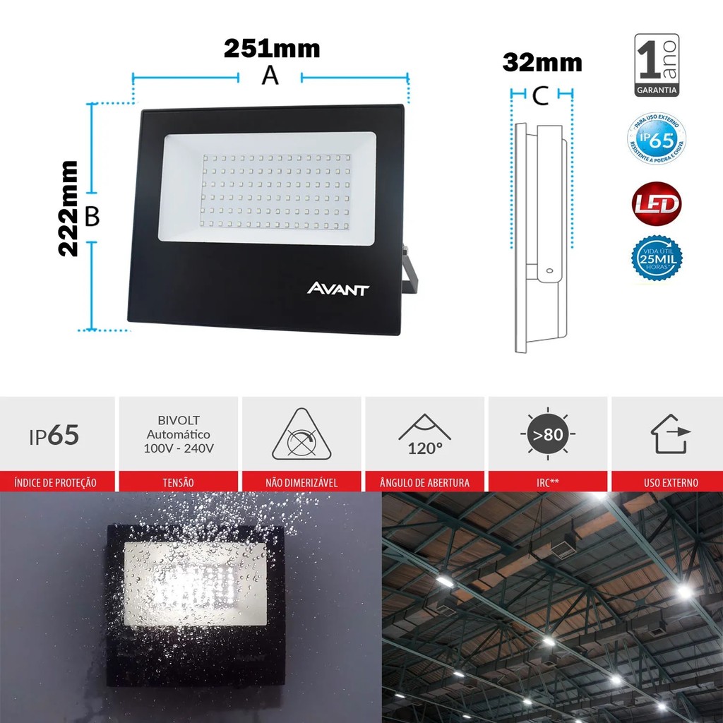 5 Refletor Led A Prova D'água Bivolt 100w Luz Amarela 3000k 7500 Lúmens Casa Comércio Avant