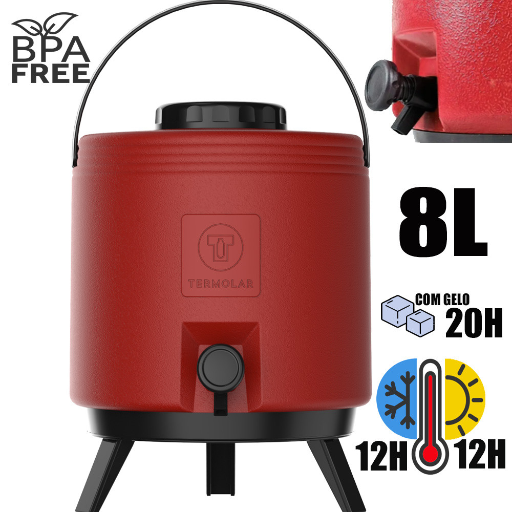 Botijão Garrafa Térmica Cor Vermelho 8 Litros Com Torneira e Pés Maxitermo Termolar