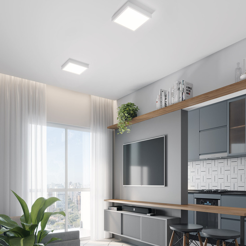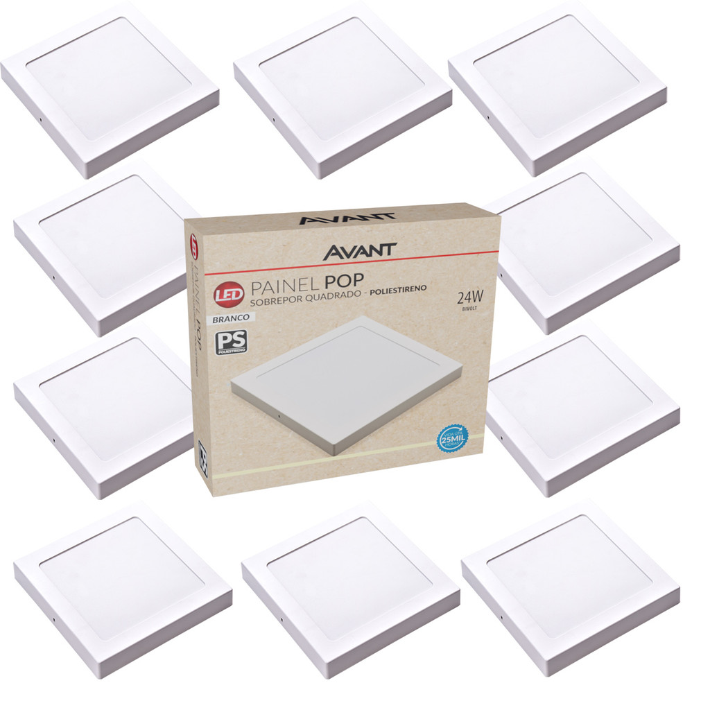 Kit 10 Painel Plafon 24W Quadrado Sobrepor Luz Branco Frio Luminaria de Teto Bivolt 127v 220v Avant