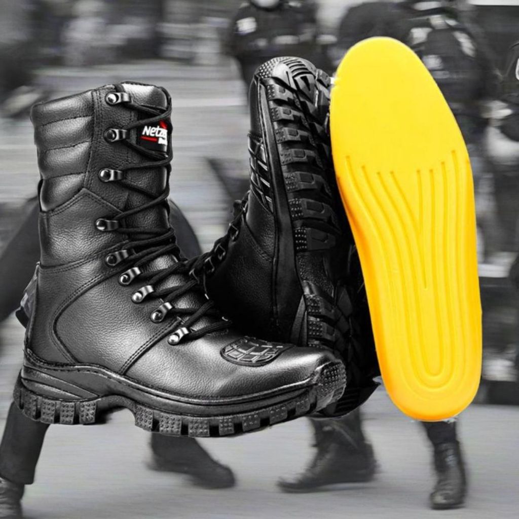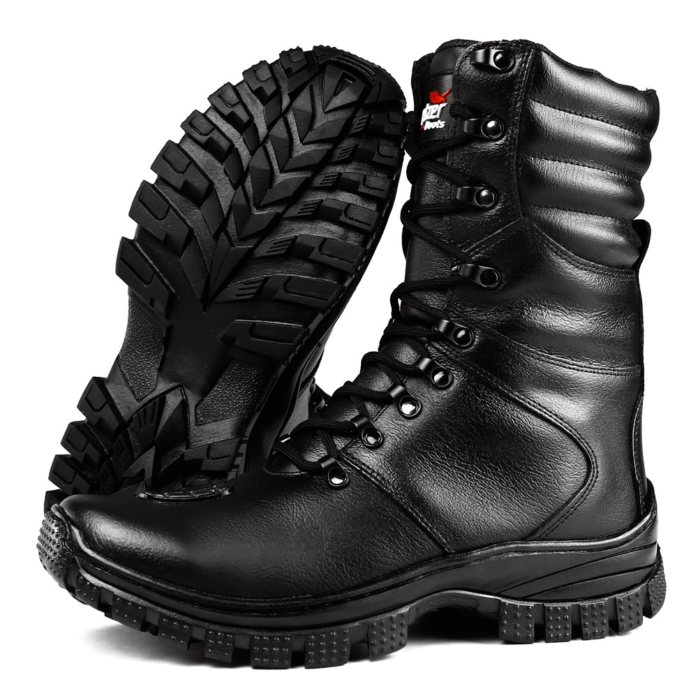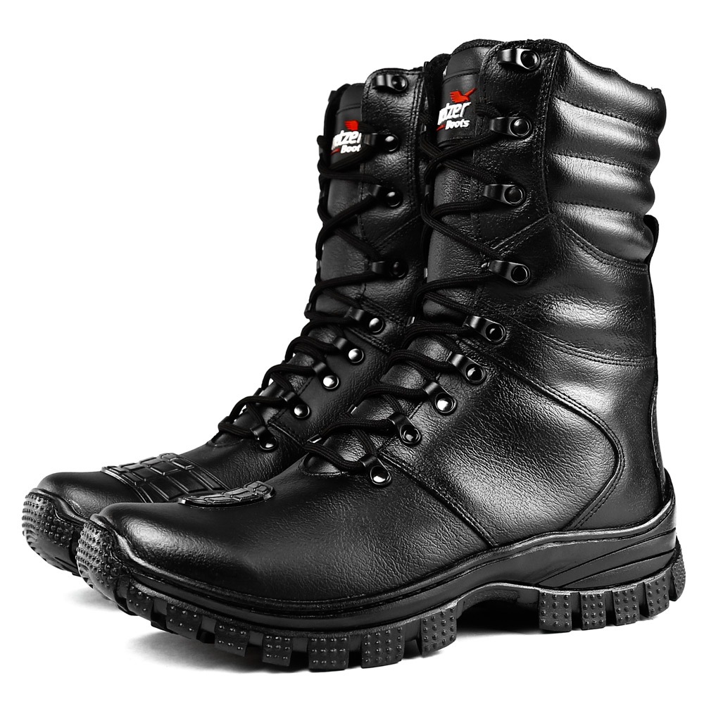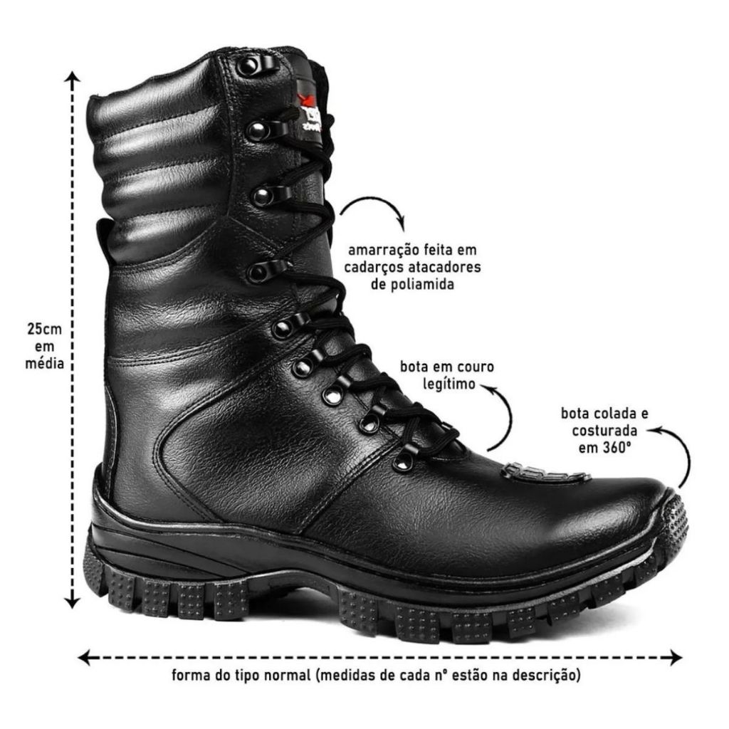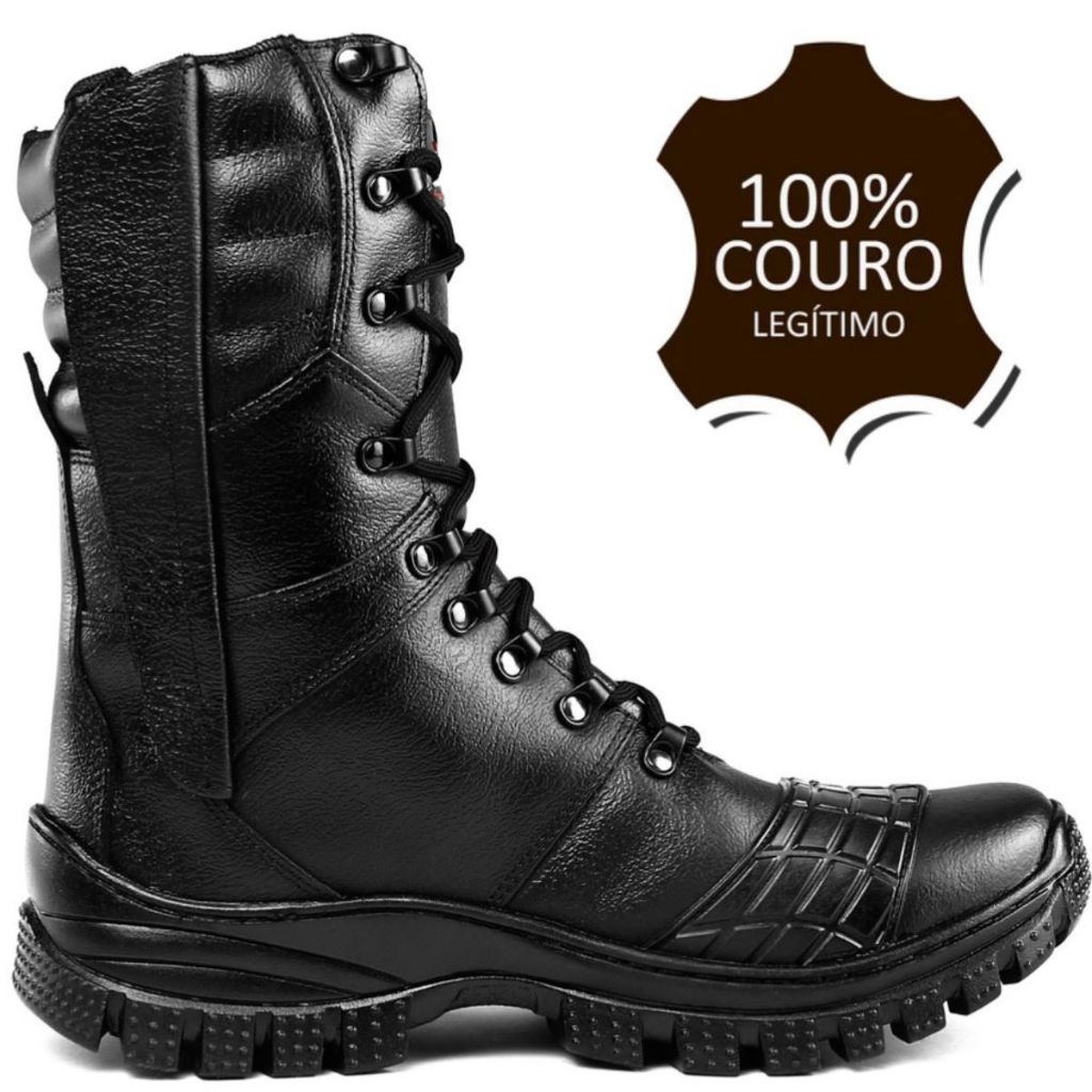 Bota Coturno Militar 100% Couro Original Palmilha Com Gel - Resistente à Água + Relógio