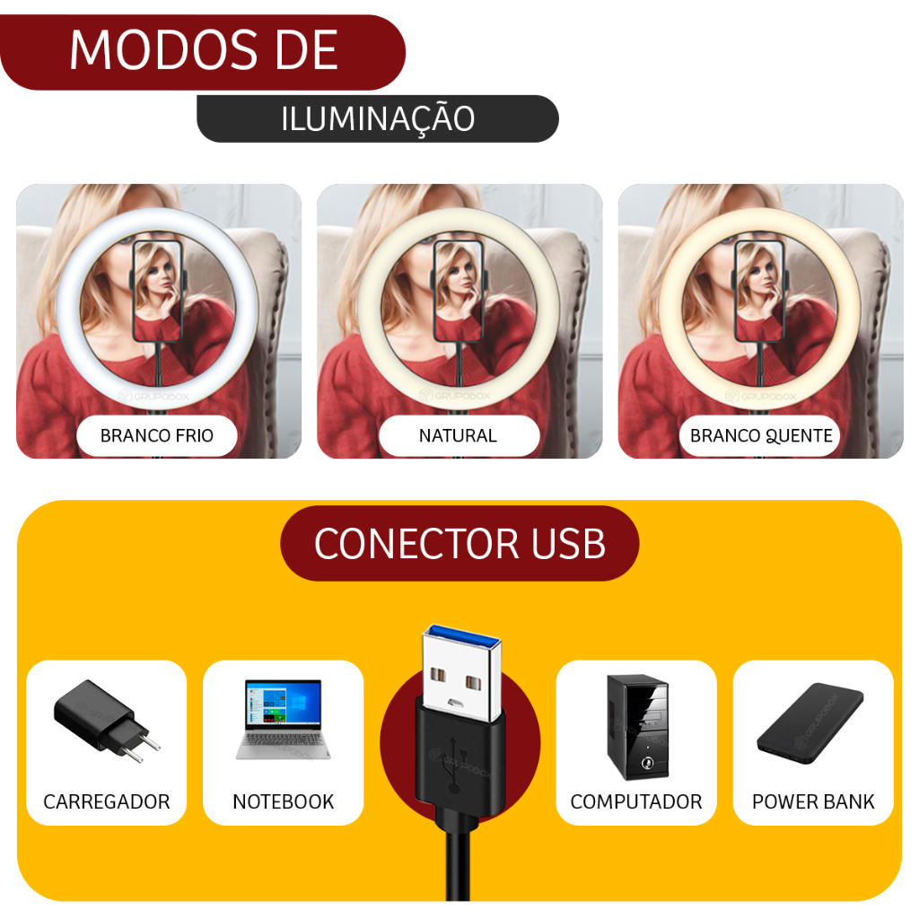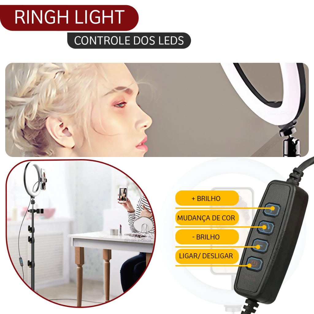 Kit Youtuber Ring Light 10 Polegadas Completo Iluminação Profissional Blogueiro Articulada Bivolt