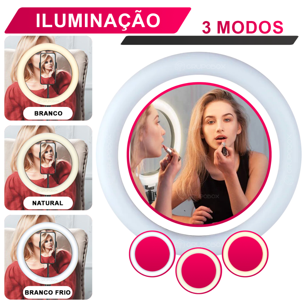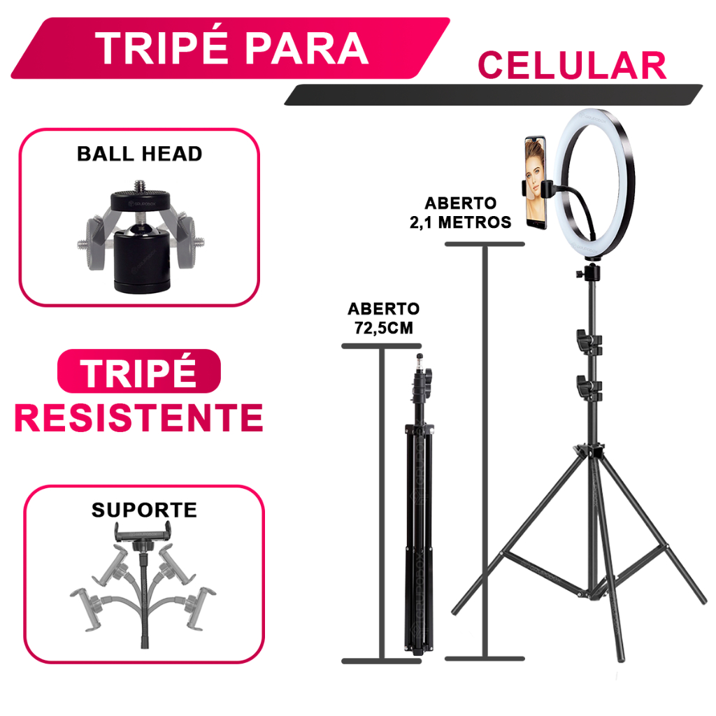 Kit Youtuber Microfone Sem Fio Profissional Tripé 2.10 Ring Light Iluminador 10 Pol Android Iphone