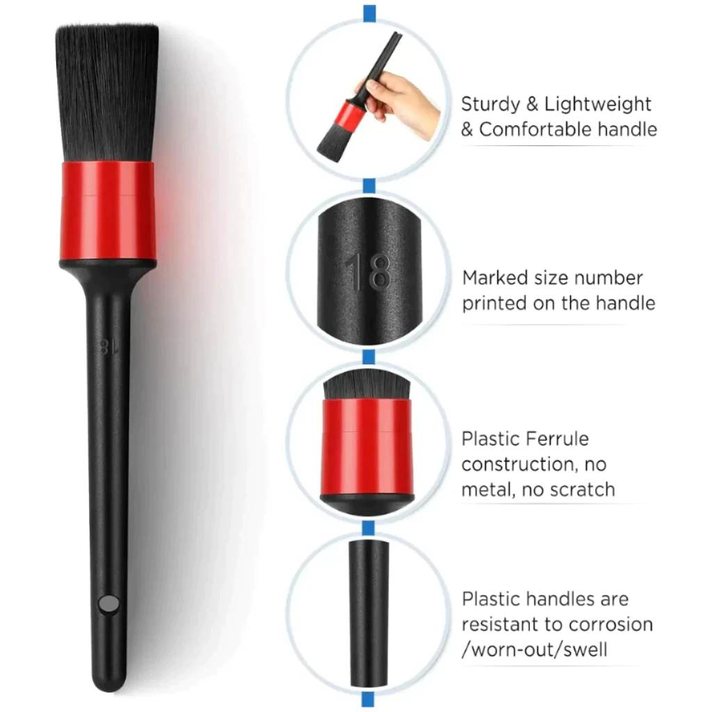 Jogo de Pincel Detalhamento e Limpeza Automotivo Automotiva Jogo com 5 Peças de Tamanhos Diferentes