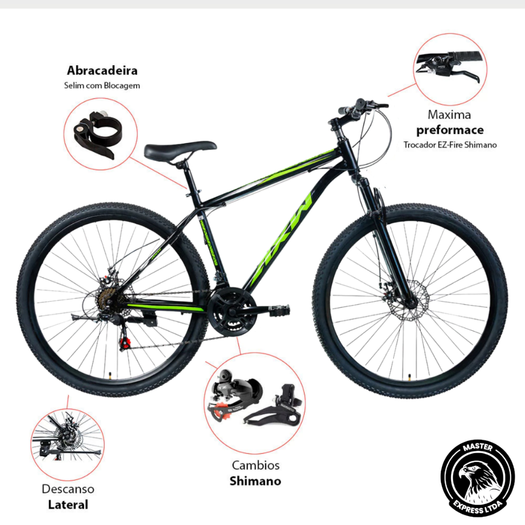 BICICLETA ARO 29, 21 MARCHAS CAMBIO SHIMANO COM SUSPENSAO, VERDE