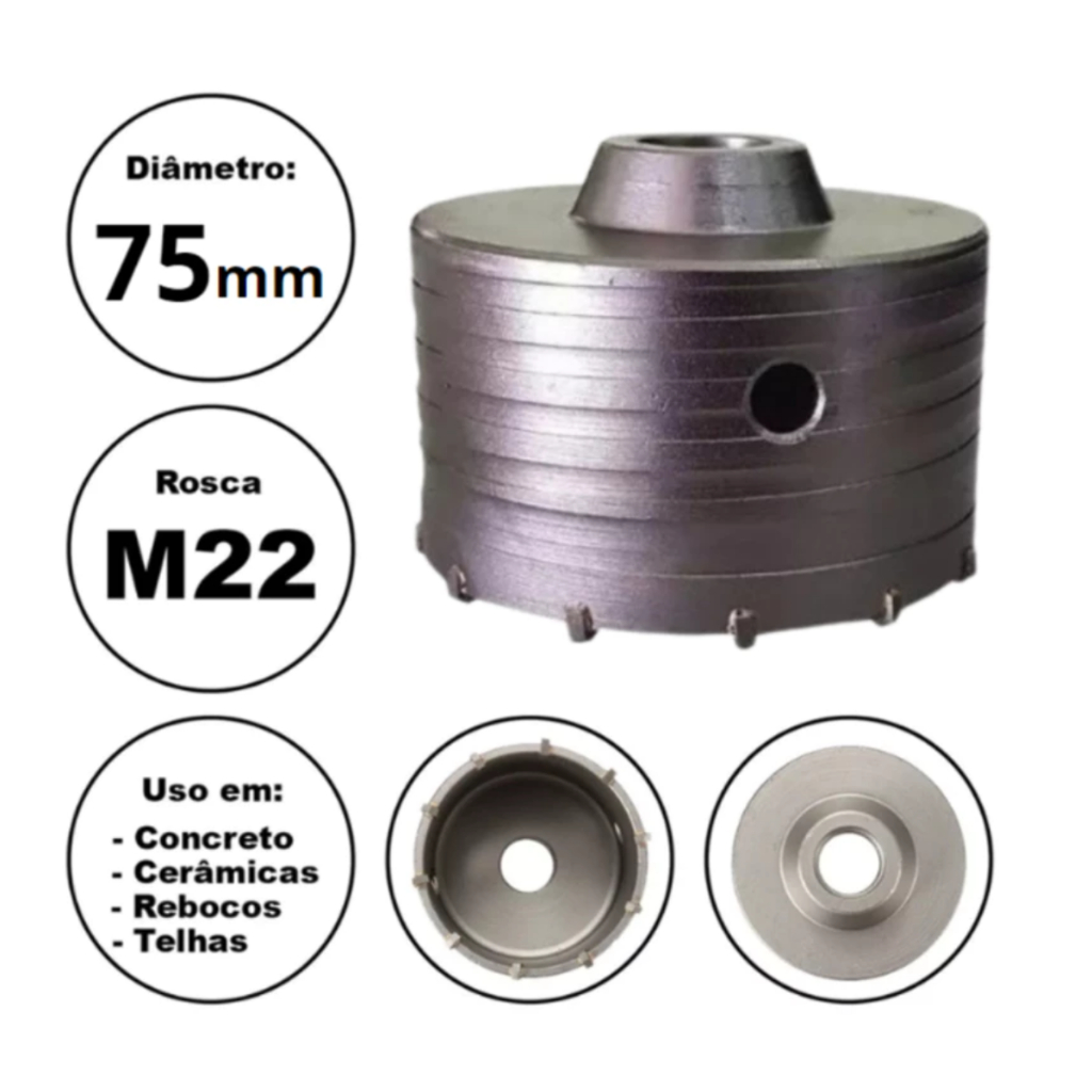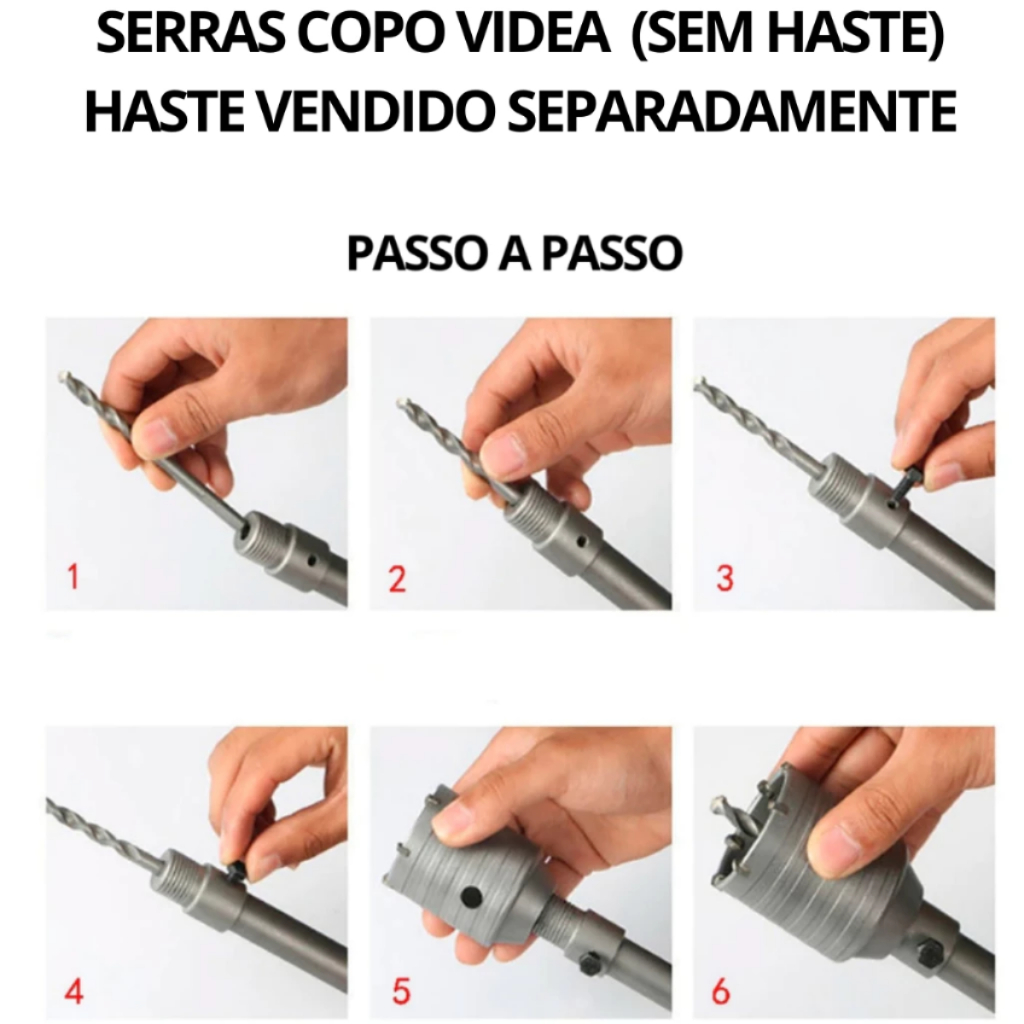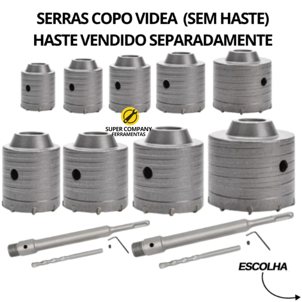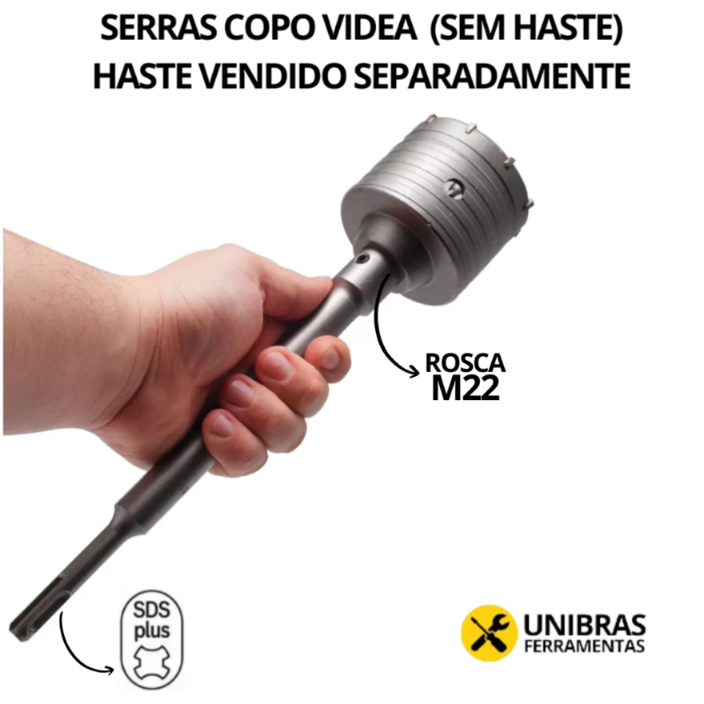 Serra Copo Videa P/ Parede Concreto 30 a 125mm Rosca M22 Haste Sds 160mm, 250mm, 400mm - Escolher
