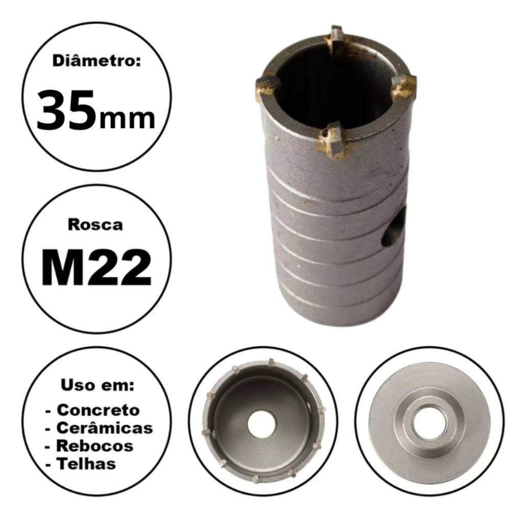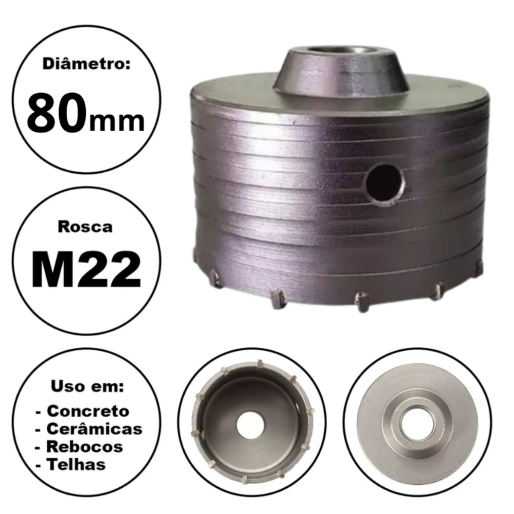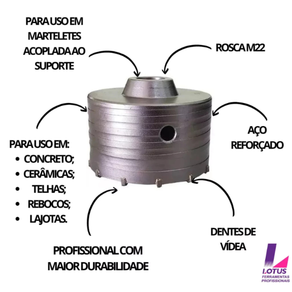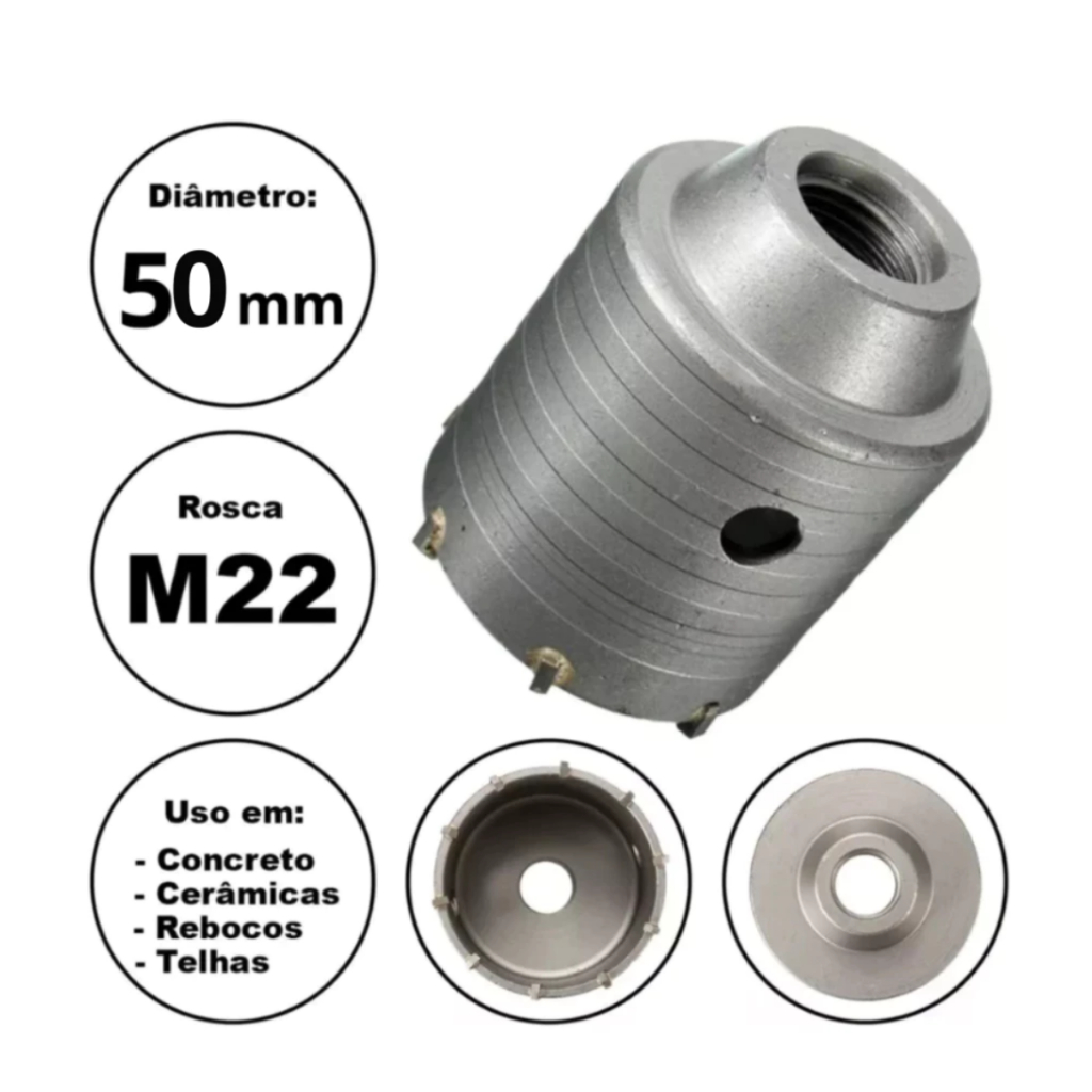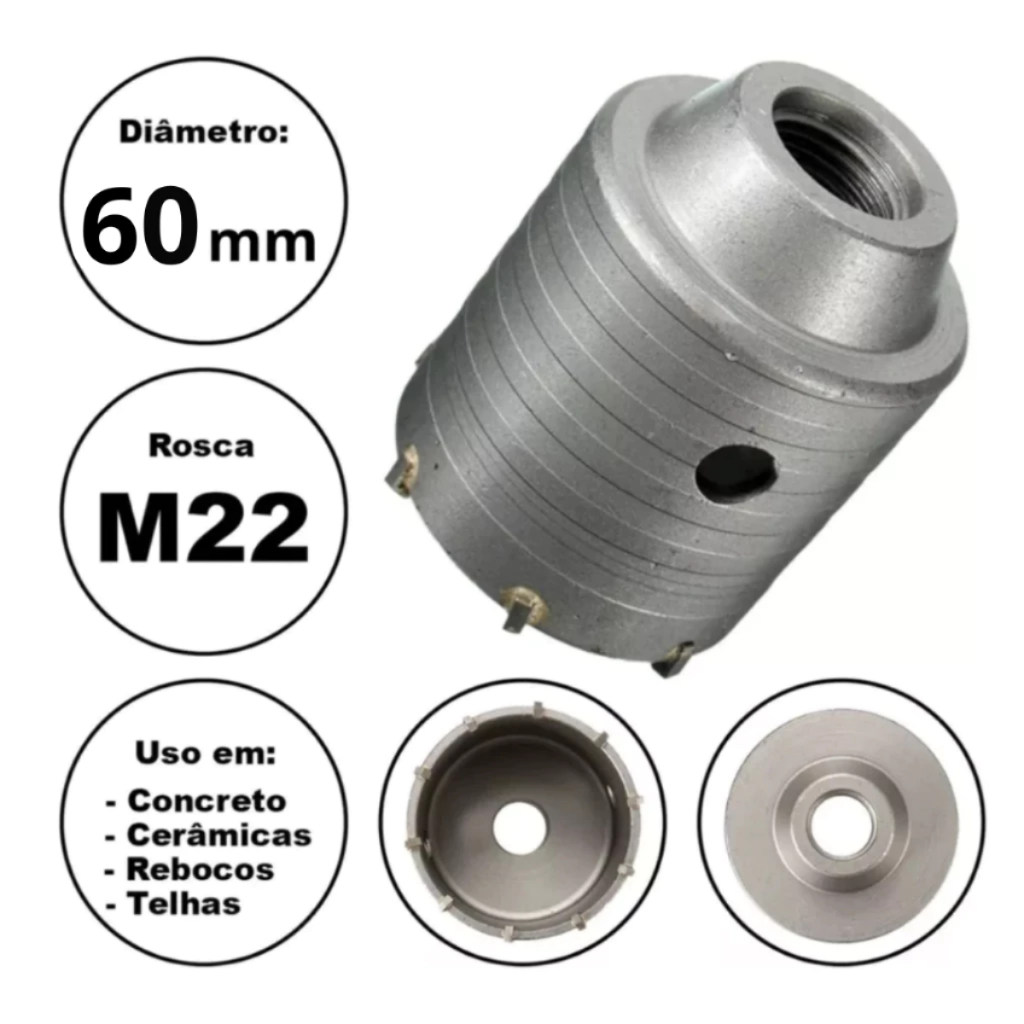 Serra Copo Videa P/ Parede Concreto 30 a 125mm Rosca M22 Haste Sds 160mm, 250mm, 400mm - Escolher