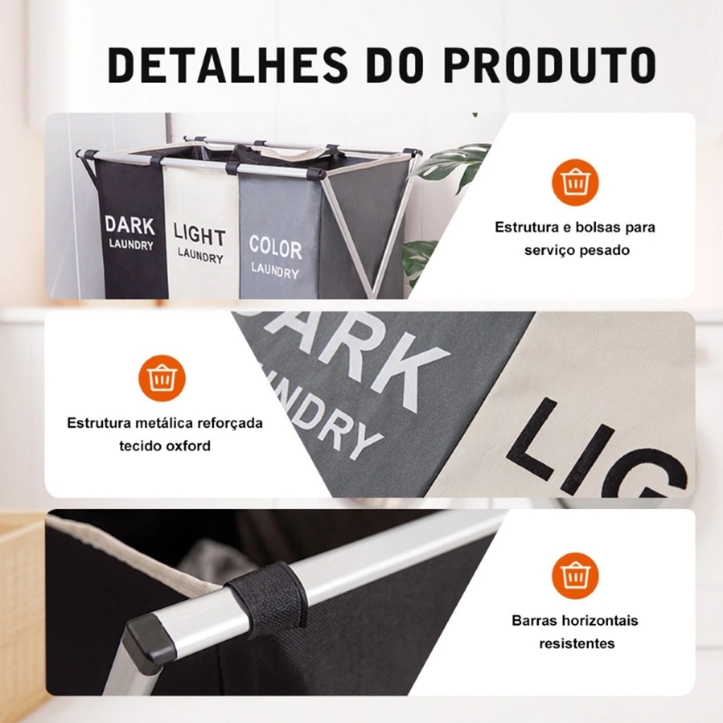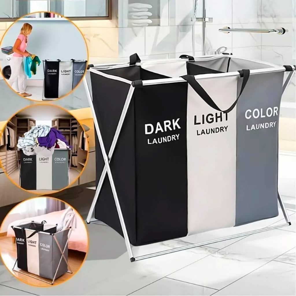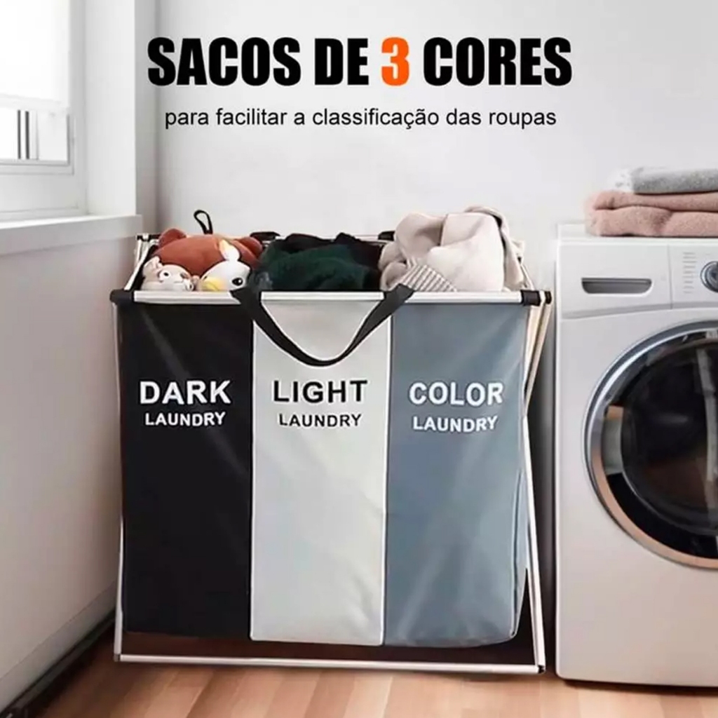 Cesto de Roupas Organizador Dobrável com 3 Divisórias Separadas Grande Premium OI-0343