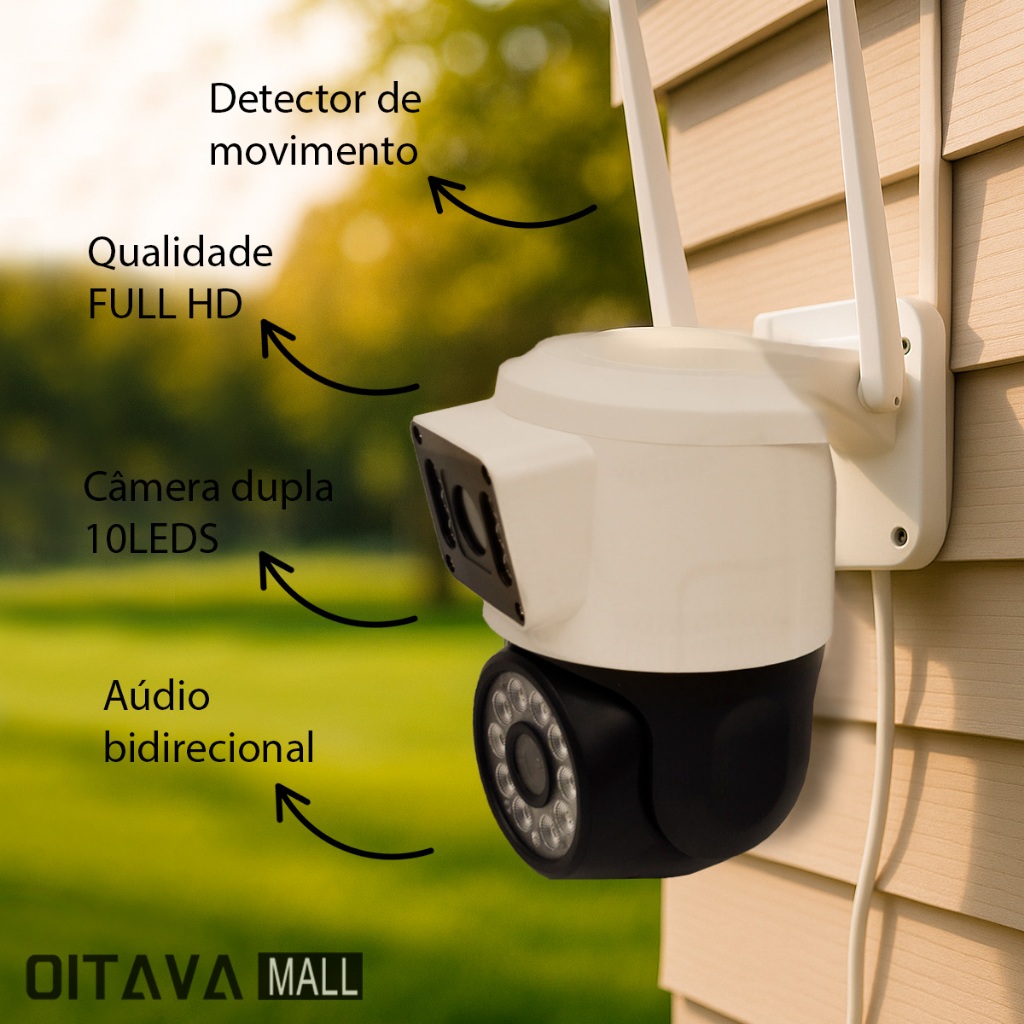 Câmera de Segurança IP Rotativa WiFi HD 1080p com Lente Dupla, Auto Tracking e Visão Noturna