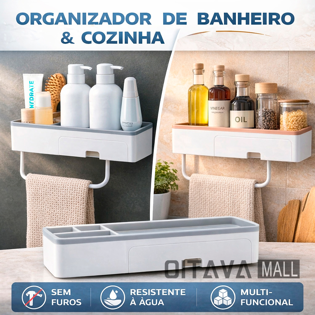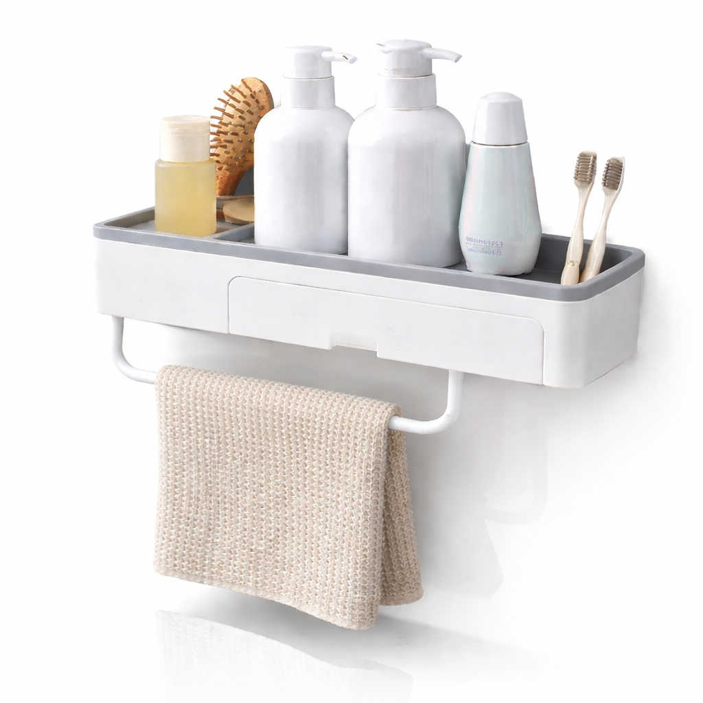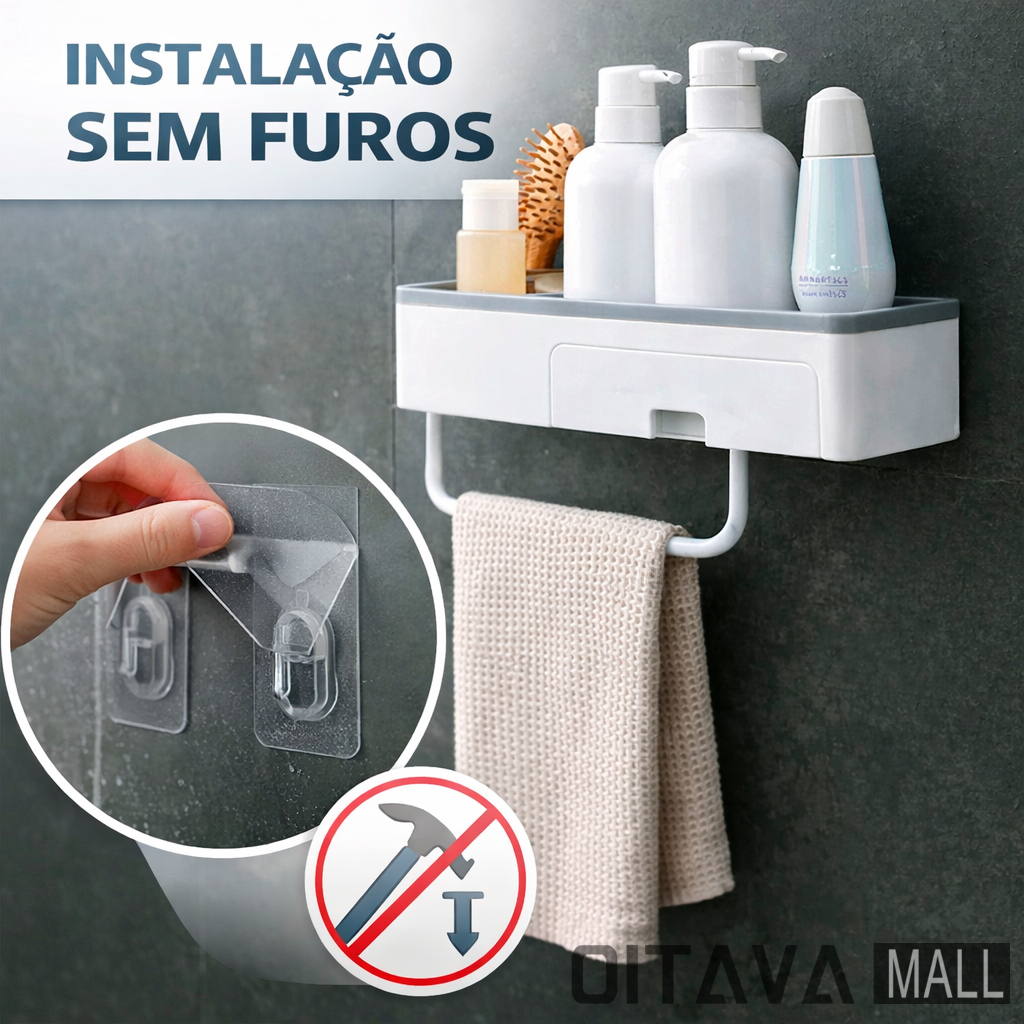 Prateleira de Banheiro Organizador de Chuveiro Montagem Parede Cosméticos Toalha Acessórios Suporte