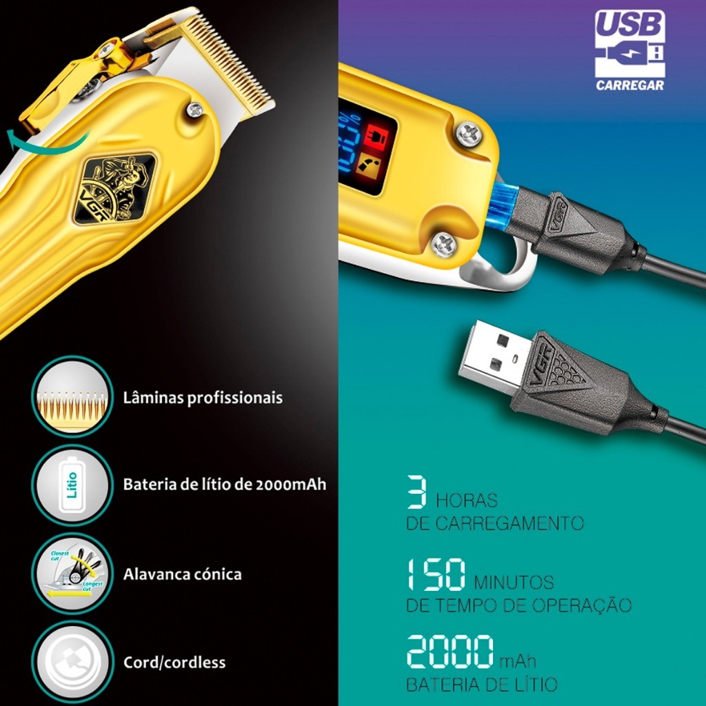 Cortador De Cabelo Profissional Vgr Oiv-267 Bivolt Prateado 6 Pentes Cabelo Barba Barbeiro Sem Fio
