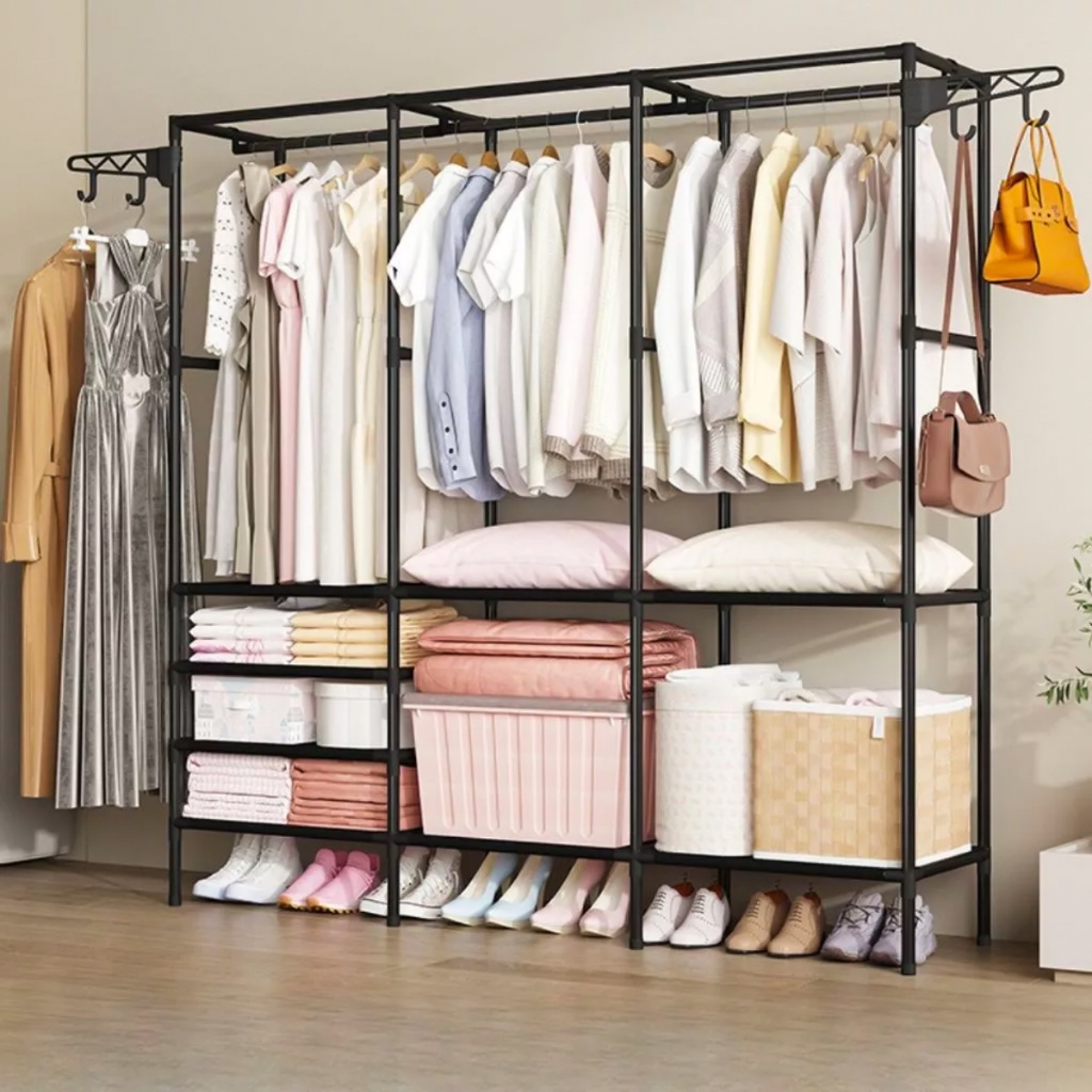 Arara Armário Com Sapateira Cabideiro e Prateleiras Guarda Roupa Portátil Multiuso