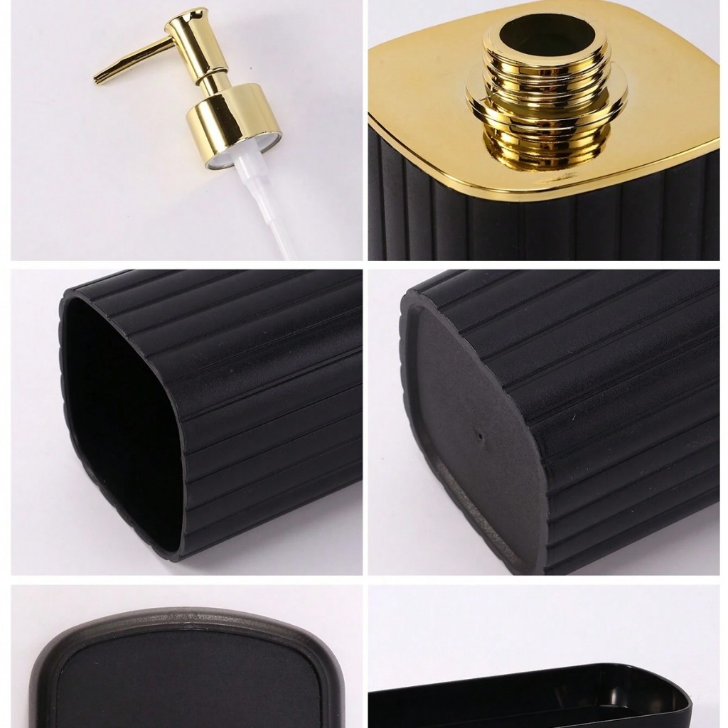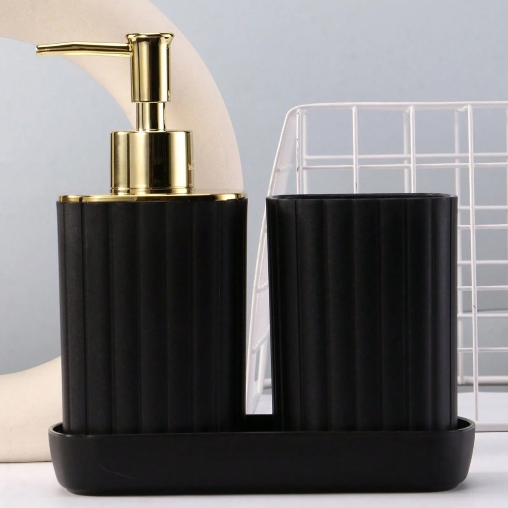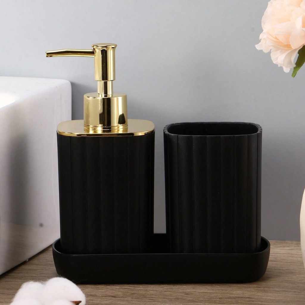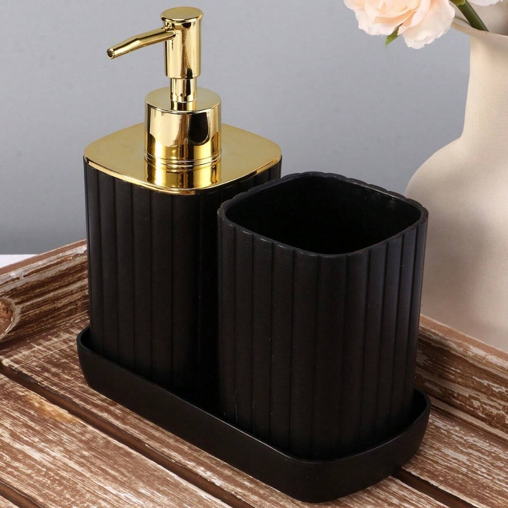 Kit Acessórios Banheiro Porta Escova Liquido 3pçs Preto Drd