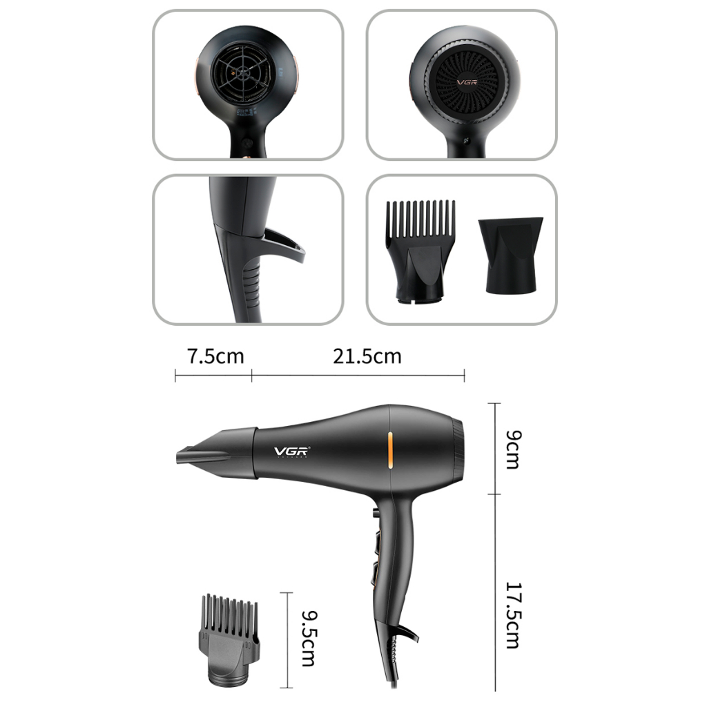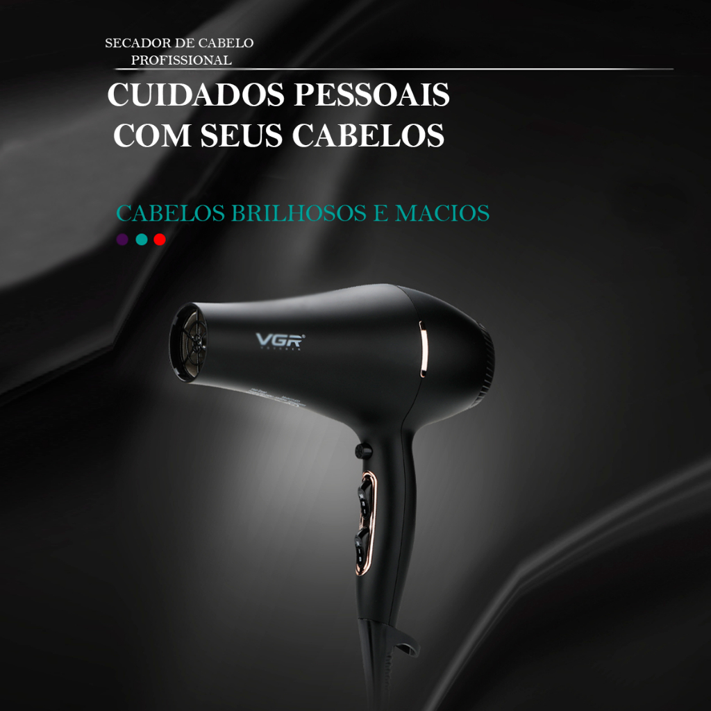 Secador De Cabelo Profissional Potente Vgr 3 Velocidades