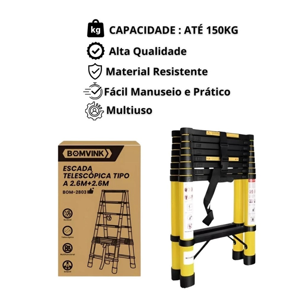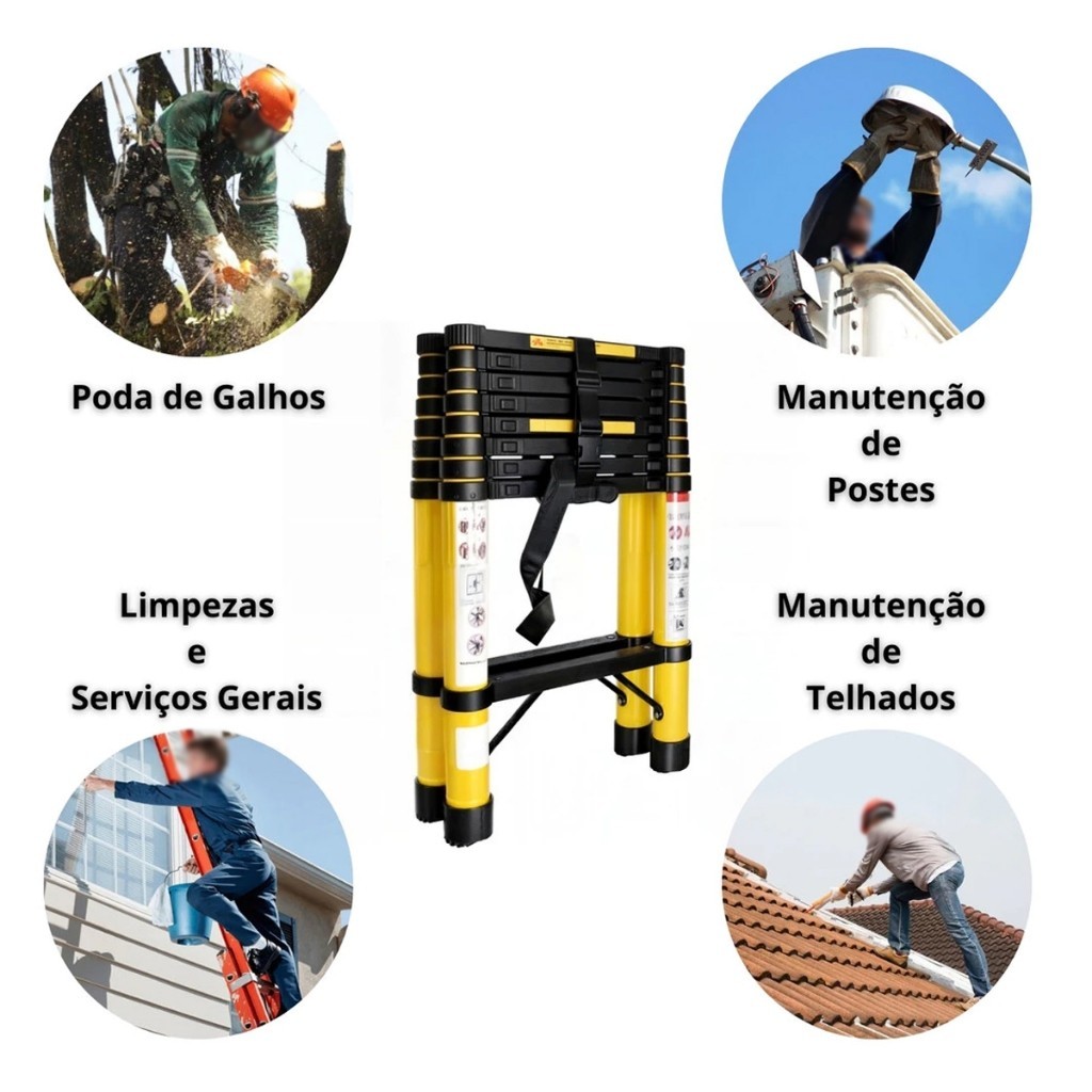 Escada Retrátil 2.5 + 2.5m Suporte Dobrável Altura Ajustável Amarela