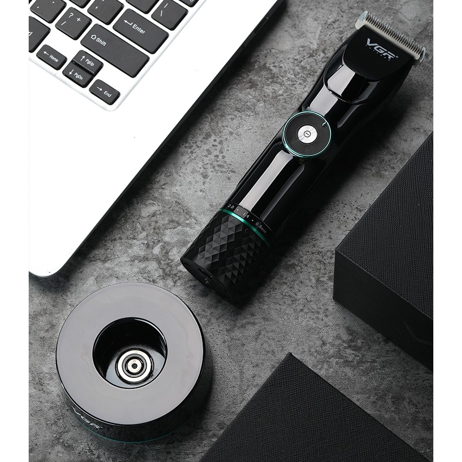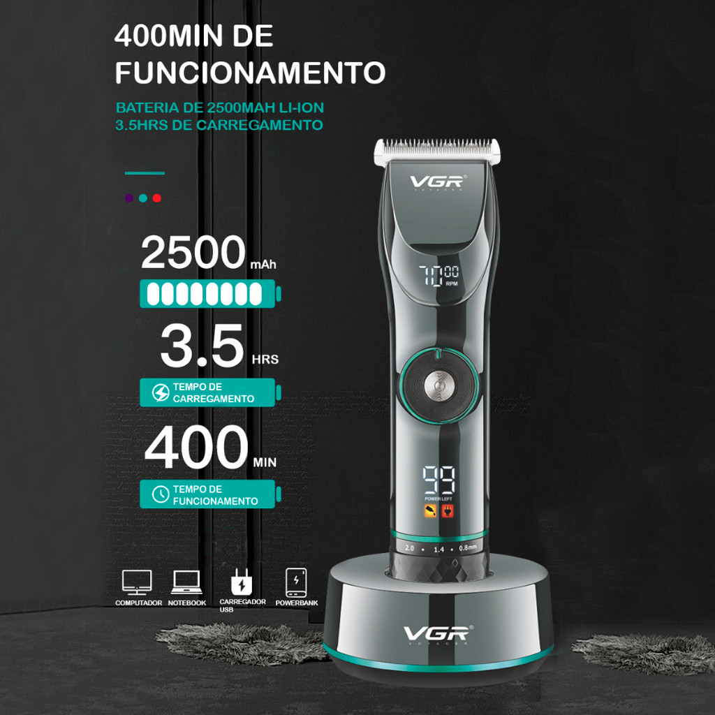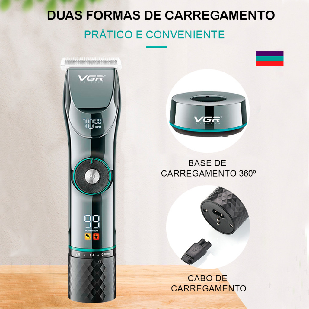 Cortador de Cabelo Profissional VGR OI VIDA OIV-256 Base de Carregamento Kit 6 Pentes Azul Sem fio