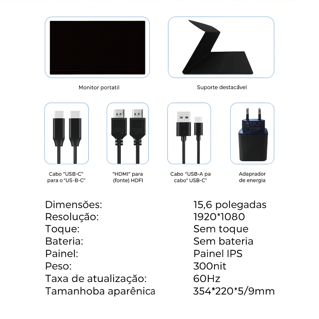 Monitor Gamer Portátil Full Sllin Viagens Trabalho Tipe-c Hdmi Cor Preto Tomate MTM-1506
