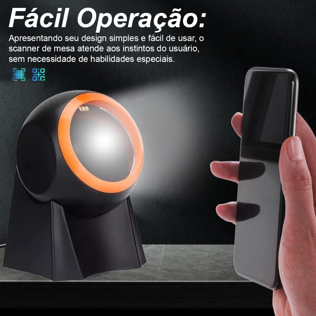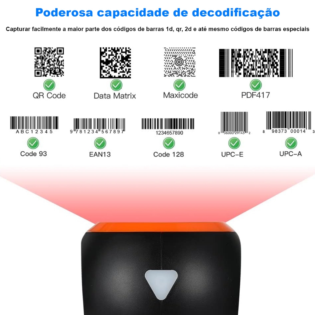 Leitor de Código de Barras Fixo QR CODE 1D e 2D Com Sensor Automático Interface USB DC 5V OI-1088
