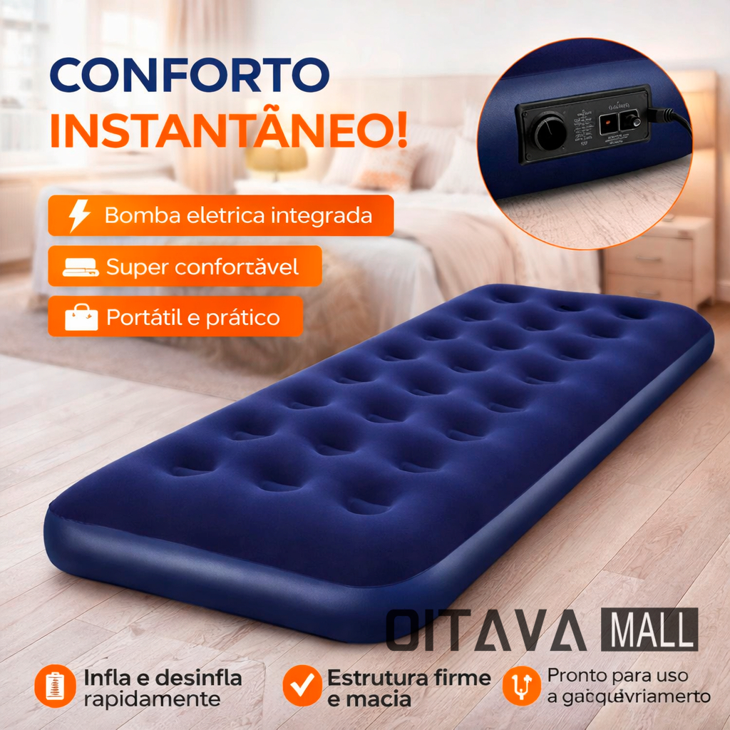 Cama Colchão Ar Inflável Bomba Elétrica Solteiro 190cm Azul