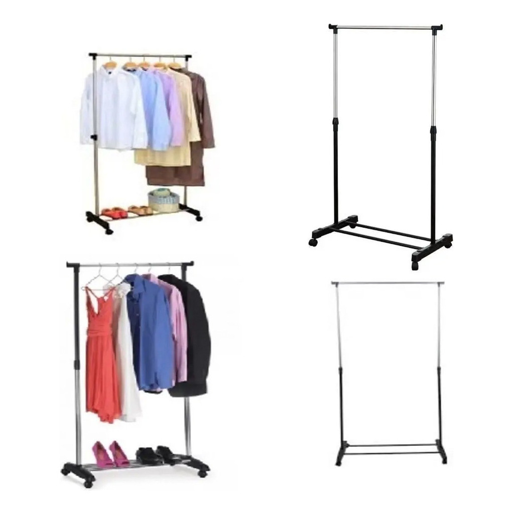 Arara Cabideiro De Roupas Com Suporte 1 Camada E Rodinha Cinza