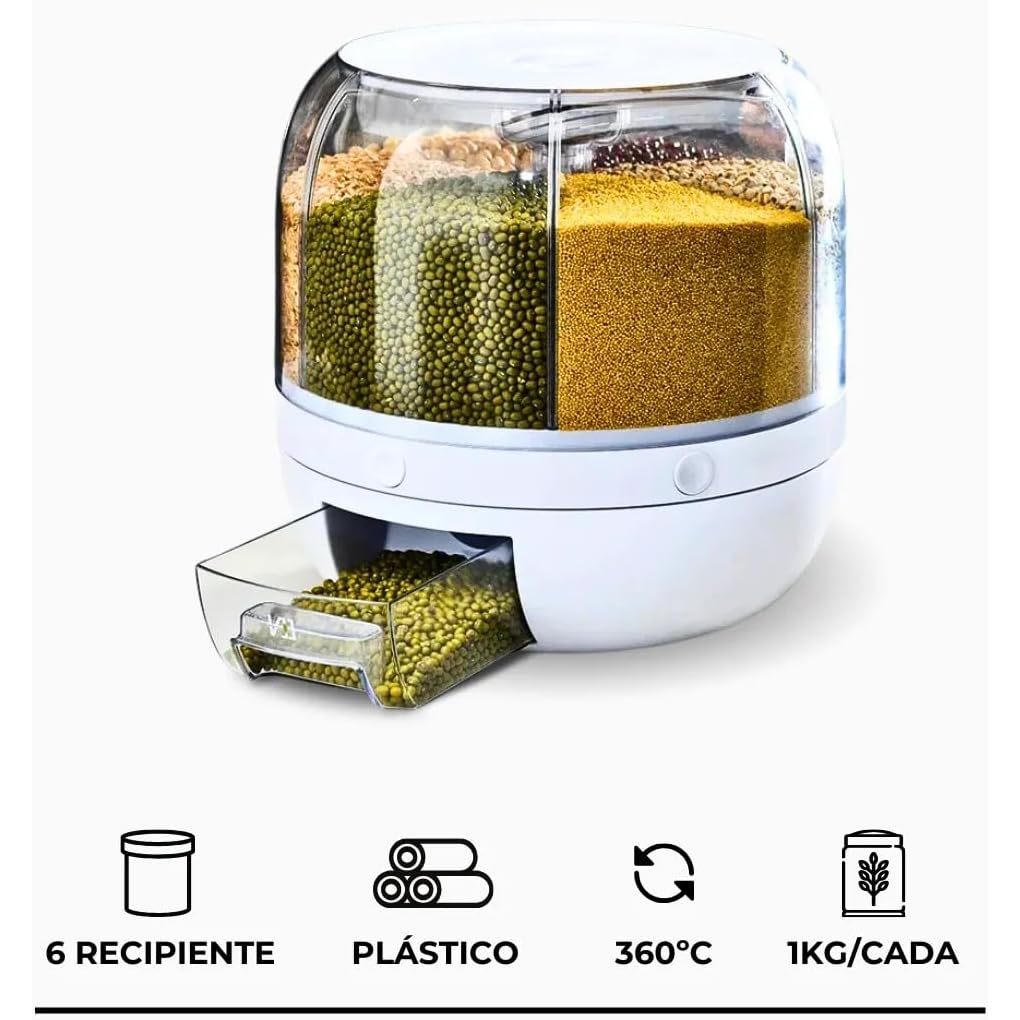 Pote de Grãos Dispenser Giratório Hermético com 6 Compartimentos
