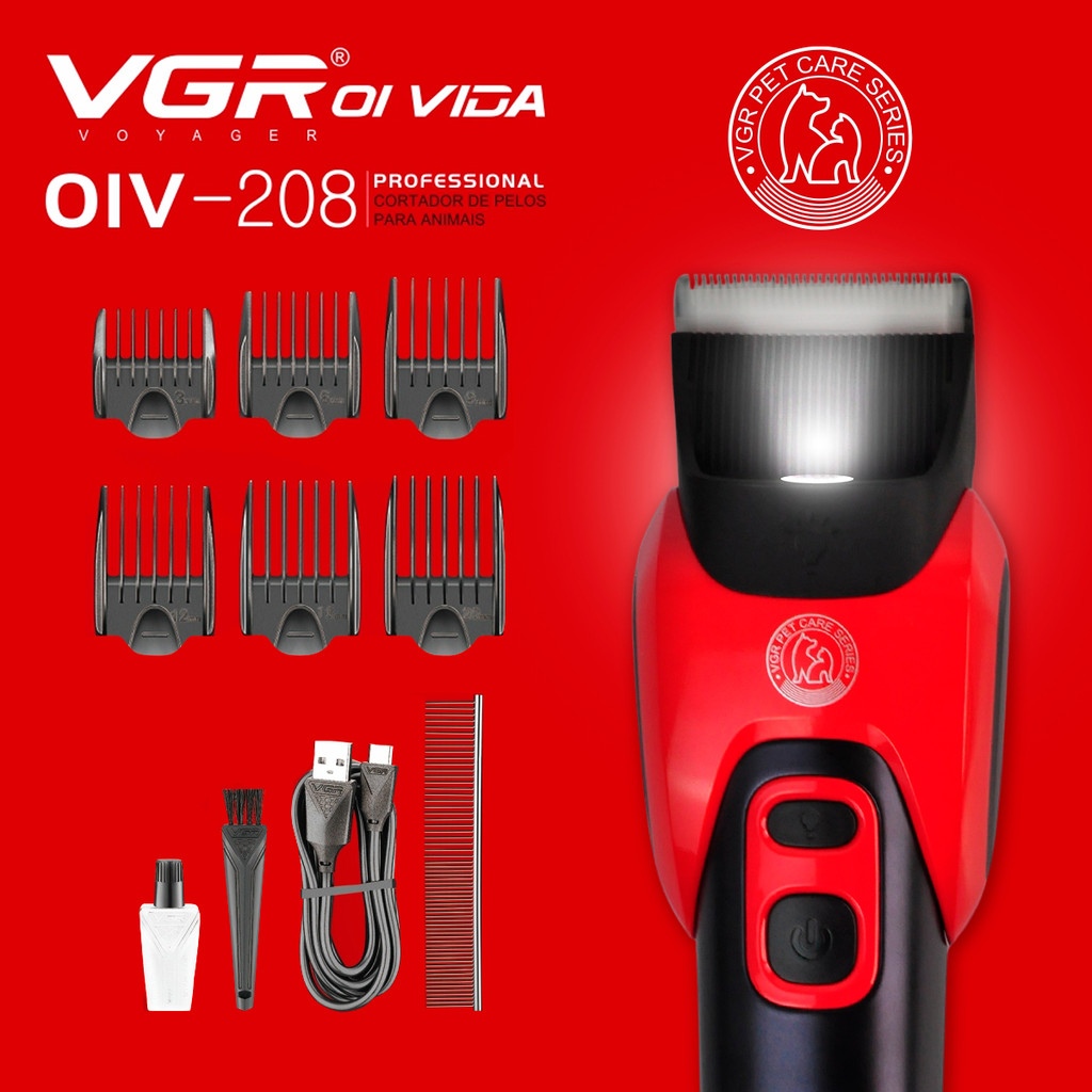 Máquina de tosa P/ Pets Profissional VGR OIV-208 USB 110/220V lâminas de cerâmica e Led - Aleatório