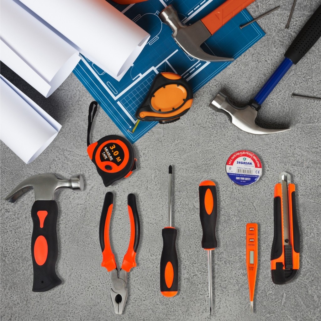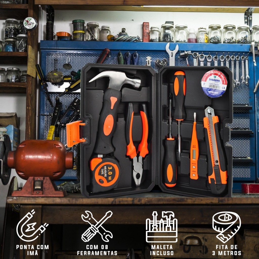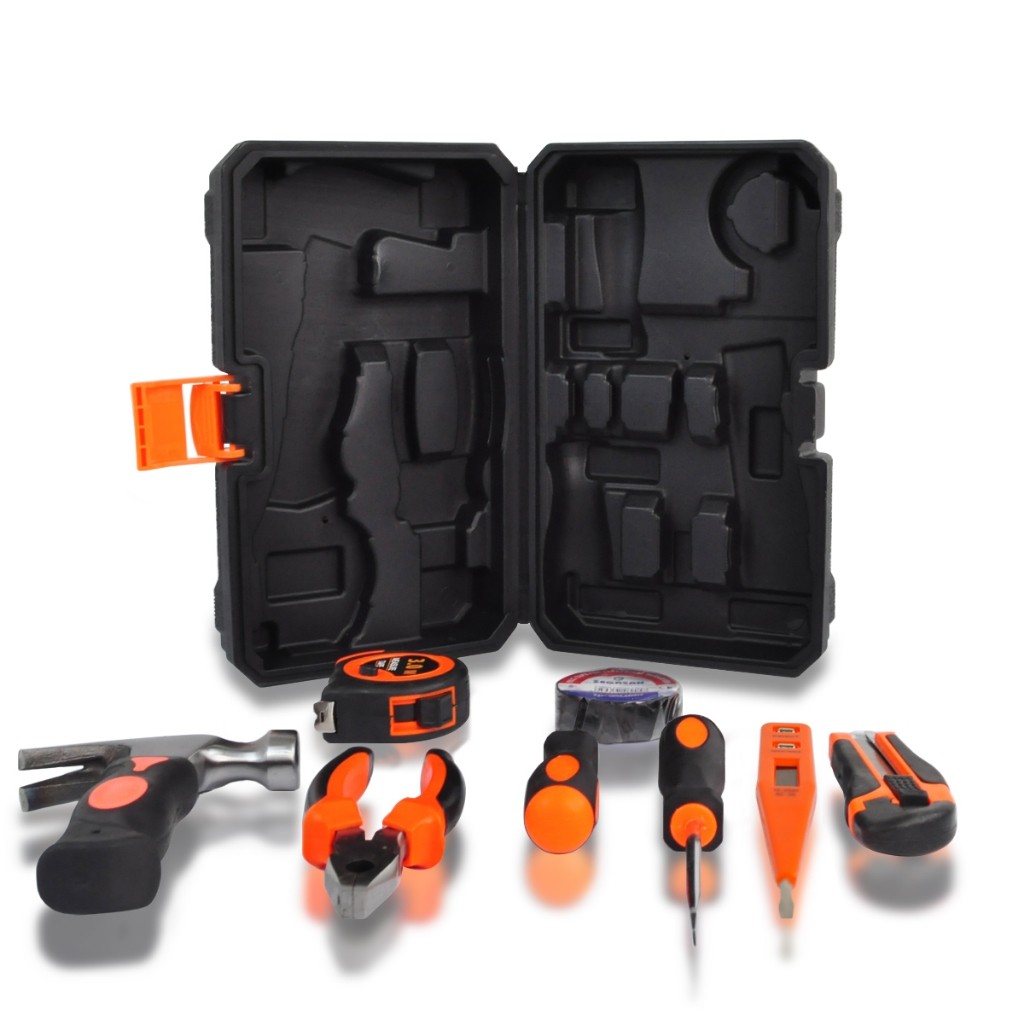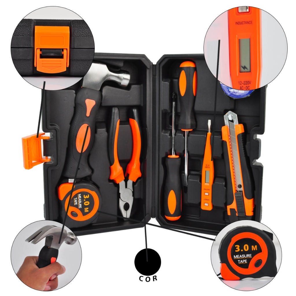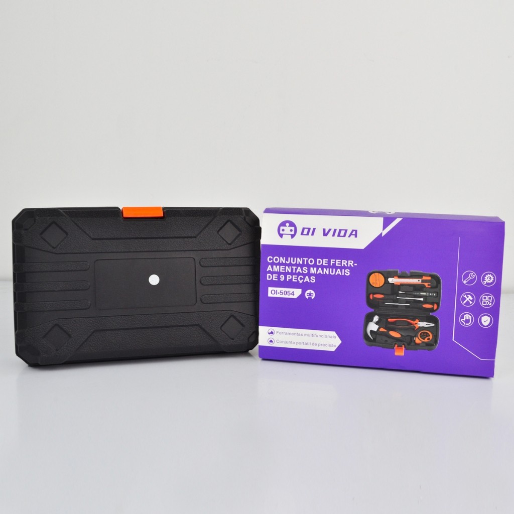 Kit Maleta Ferramenta 9 Peças Compacto Versátil Chave de Fenda Martelo Estilete Reparo Portátil DIY