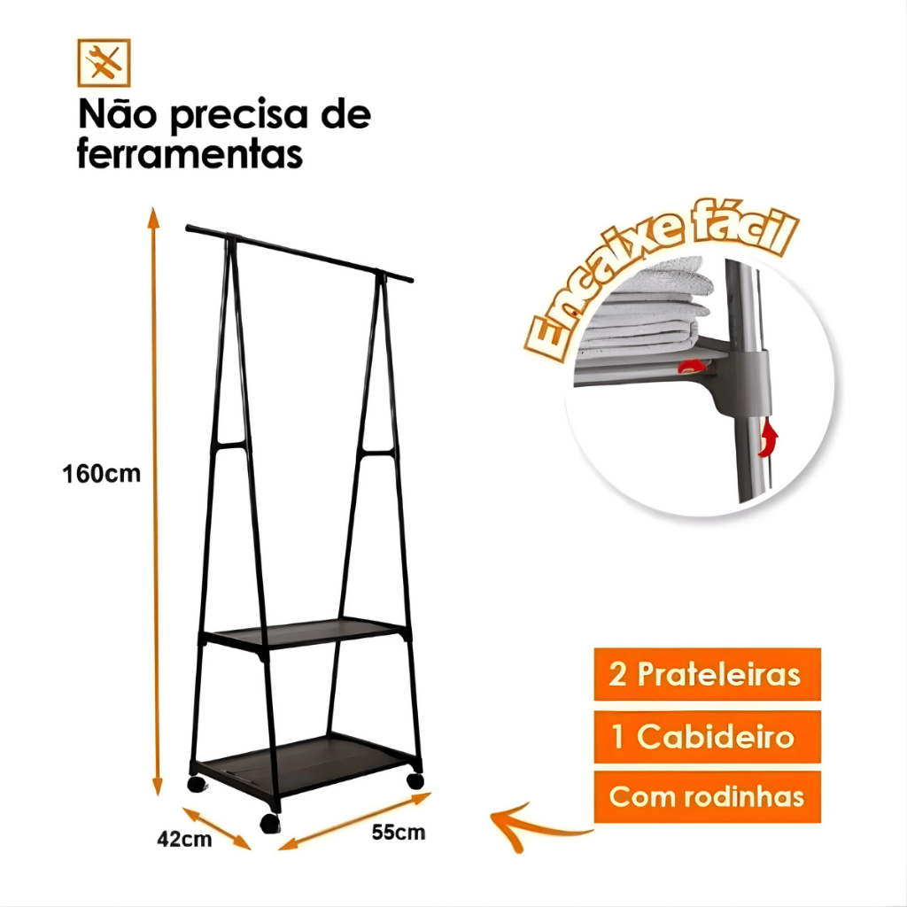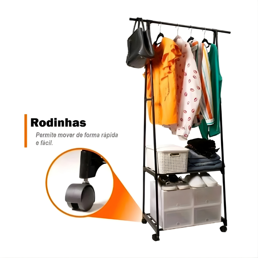 Arara Organizadora com Prateleiras e Rodinhas 160cm Closet Aberto Multiuso