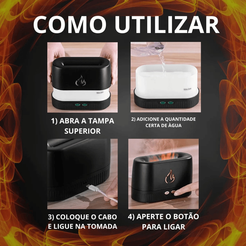 Umidificador Aromatizador Efeito Chama LED 200ml Portátil USB Silencioso
