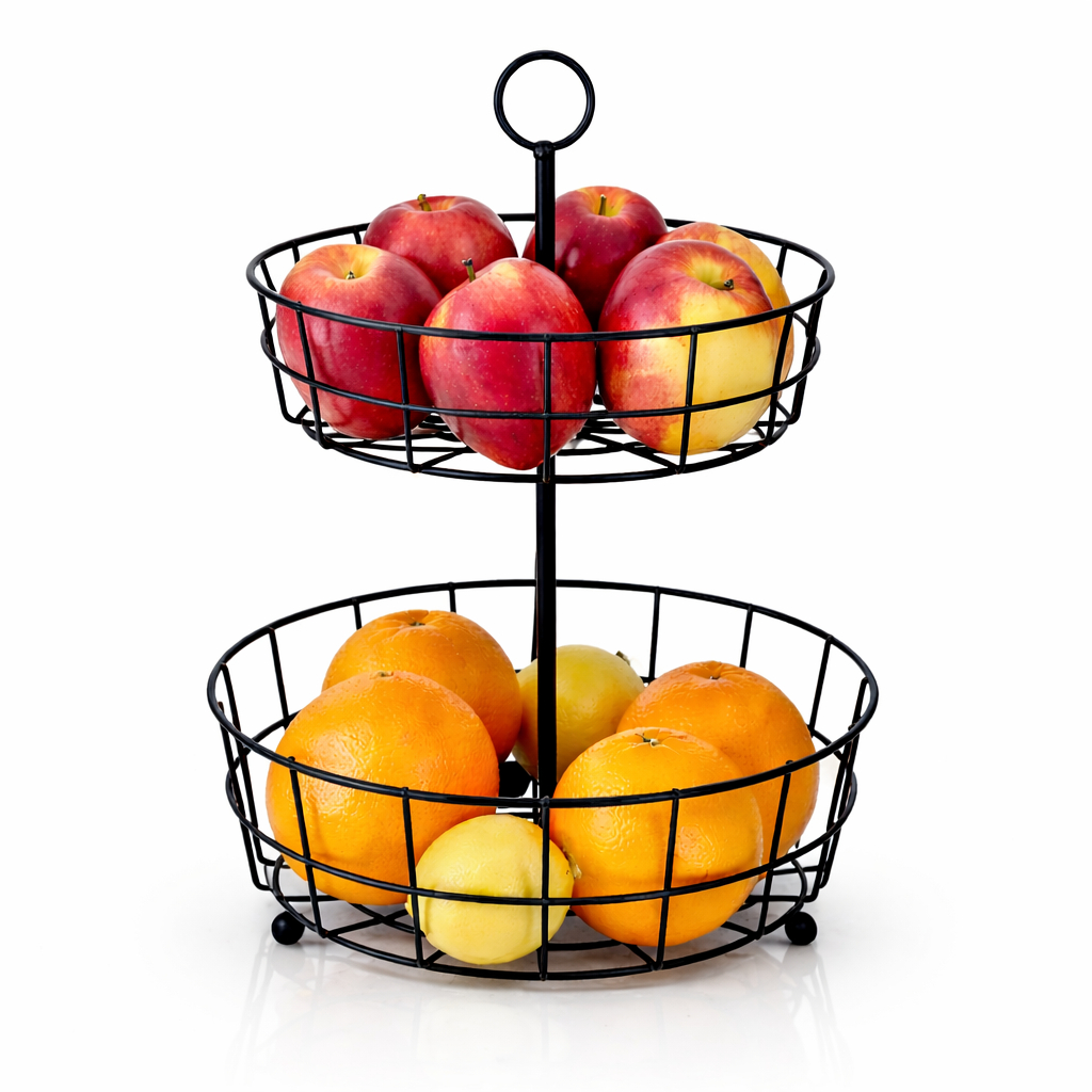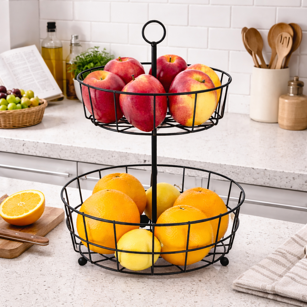 Fruteira 2 Andares Removível Redonda Mesa Ferro Aramado Luxo Decoração