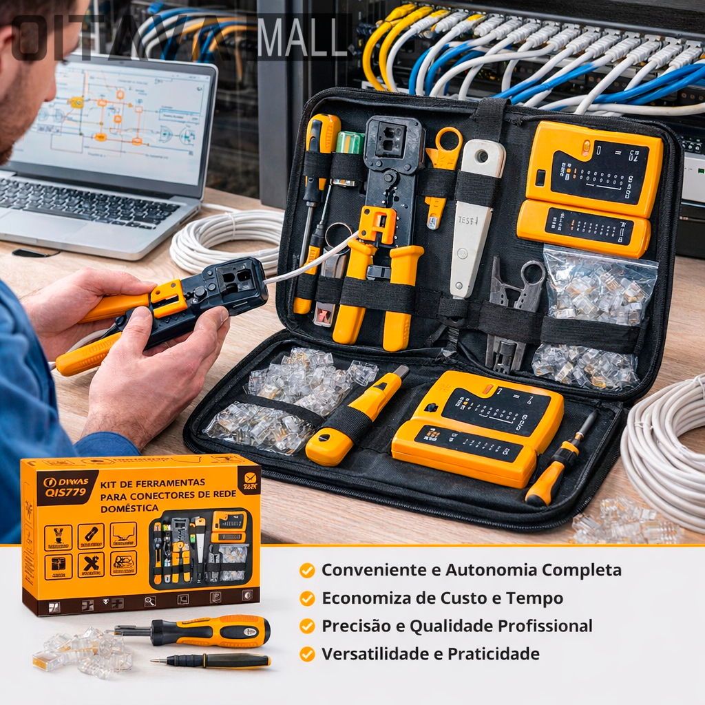 Kit Ferramentas Rede RJ45 Alicate Crimpador Testador 10 Peças