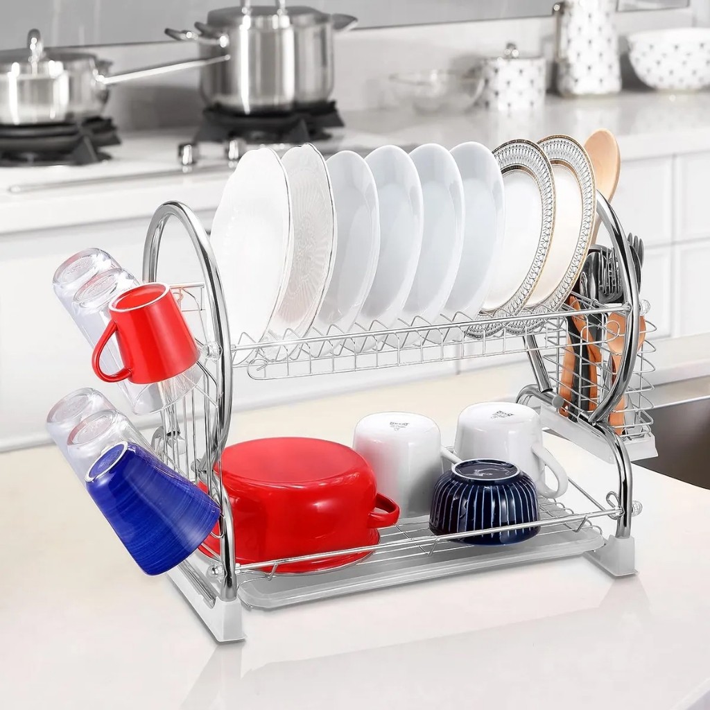 Escorredor De Louças Multifuncional 2 Andares Copos Talheres