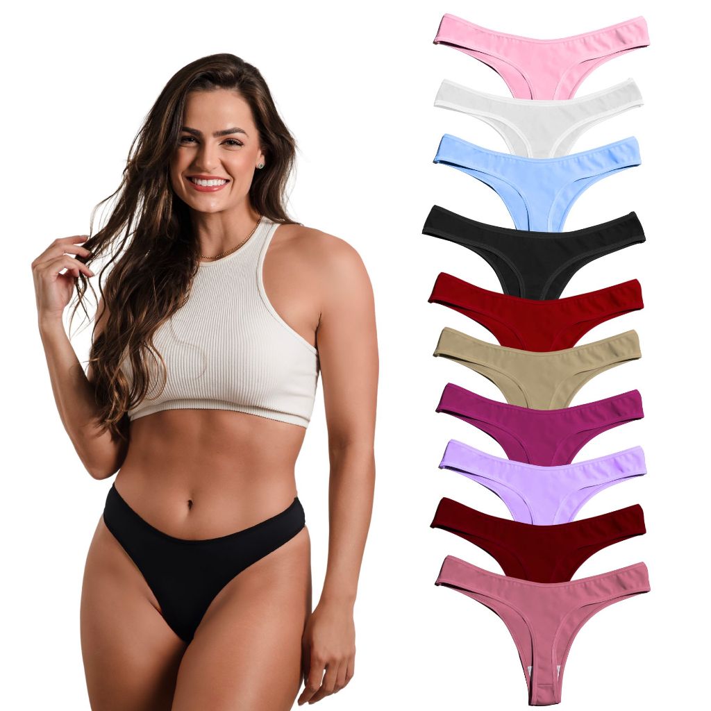 Kit 10 Calcinha Fio Dental Algodão Conforto Cotton Feminina