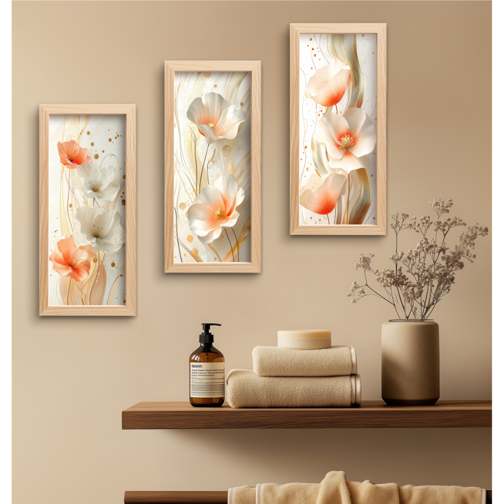kit 3 quadros decorativos lavabo banheiro cozinha sala de jantar copa parede moderno com moldura
