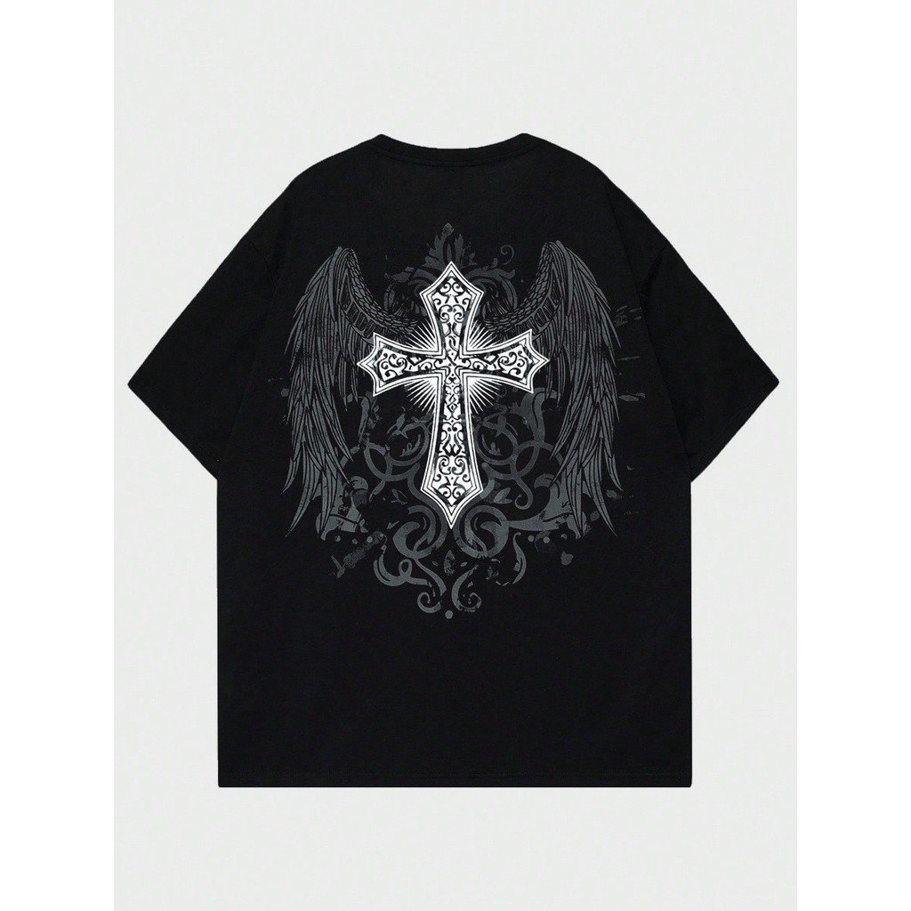 Camiseta Emo Cruz Com Asas Unissex 100% Algodão Temos Plus Size. Envio em 24h