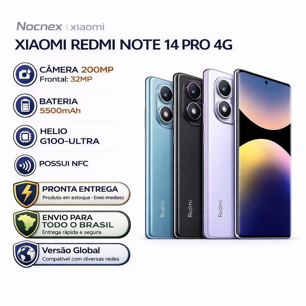 Celular Xiaomi Redmi Note 14 Pro 4G 256gb / 512gb Versão Global (COM CAPINHA E PELÍCULA DE CORTESIA)