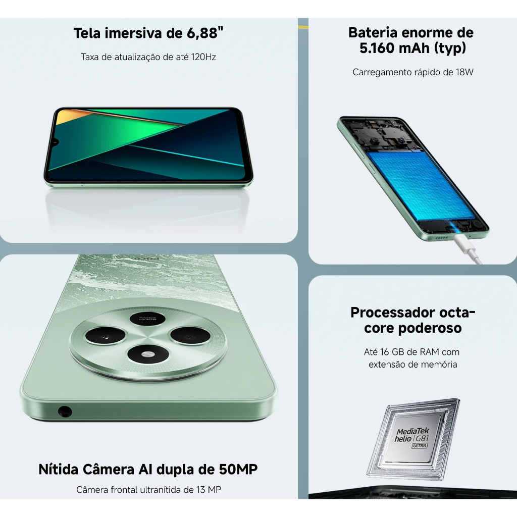 Smartphone Xiaomi Poco C75 256GB / 128GB Versão Global NFC Envio Imediato (COM PELÍCULA DE CORTESIA)