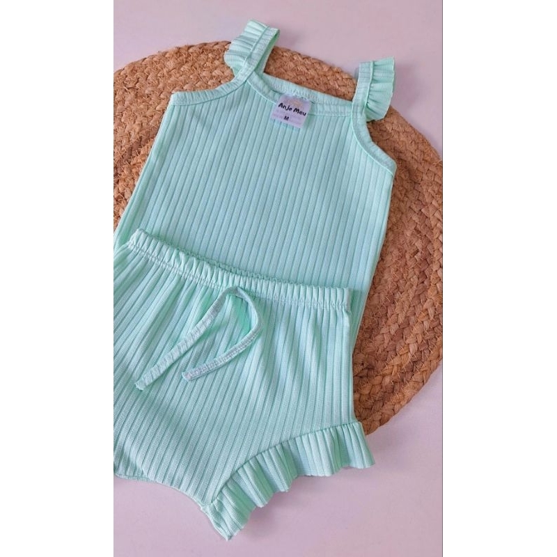 Conjunto de bebê Body de alcinha com Babado Frufru Cores Candy Verão