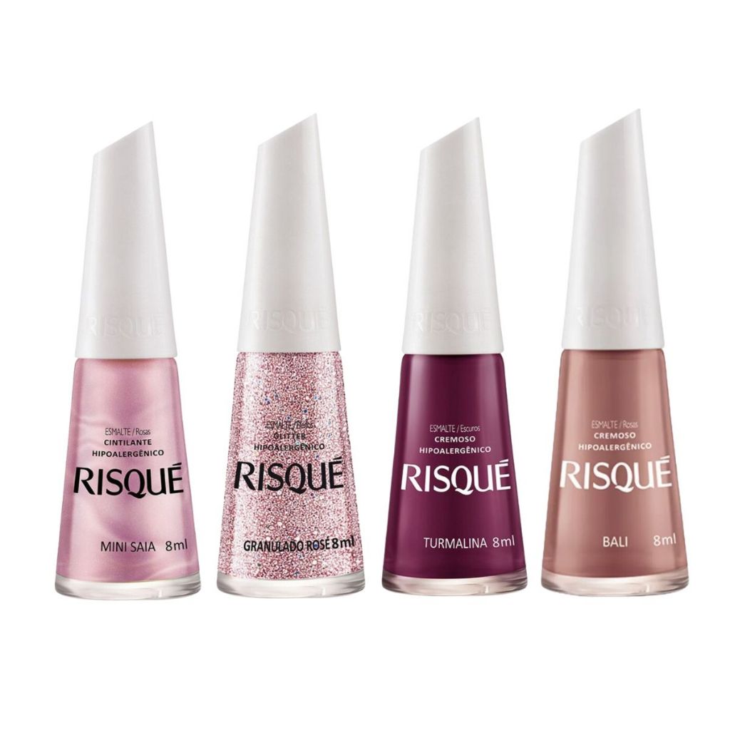 RISQUÉ: Kit com 4 Esmaltes em Tons de Rosa e Nude