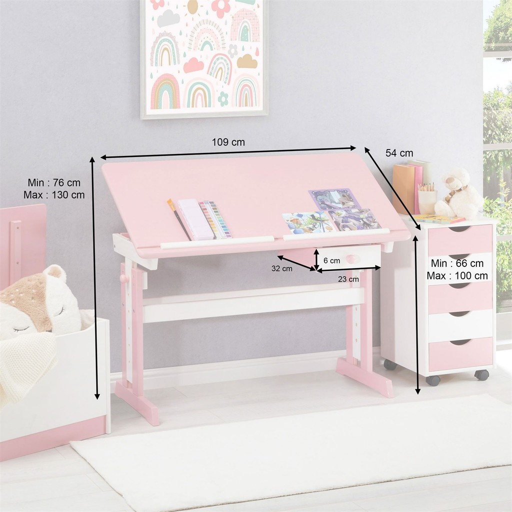 Mesa Desenho Infantil Menina Madeira Regulável Flexi Branco Rosa