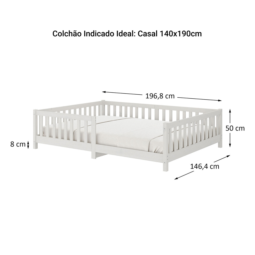 Cama Casal Infantil Grade Montessori Madeira Chão Branco Eva