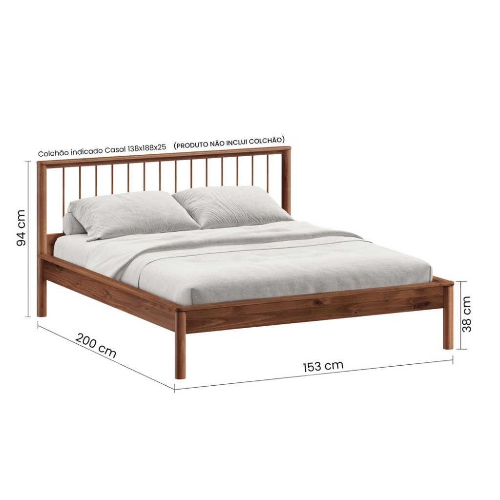 Cama de Casal Madeira 140x190cm Cabeceira Ripada Castanho Apoana