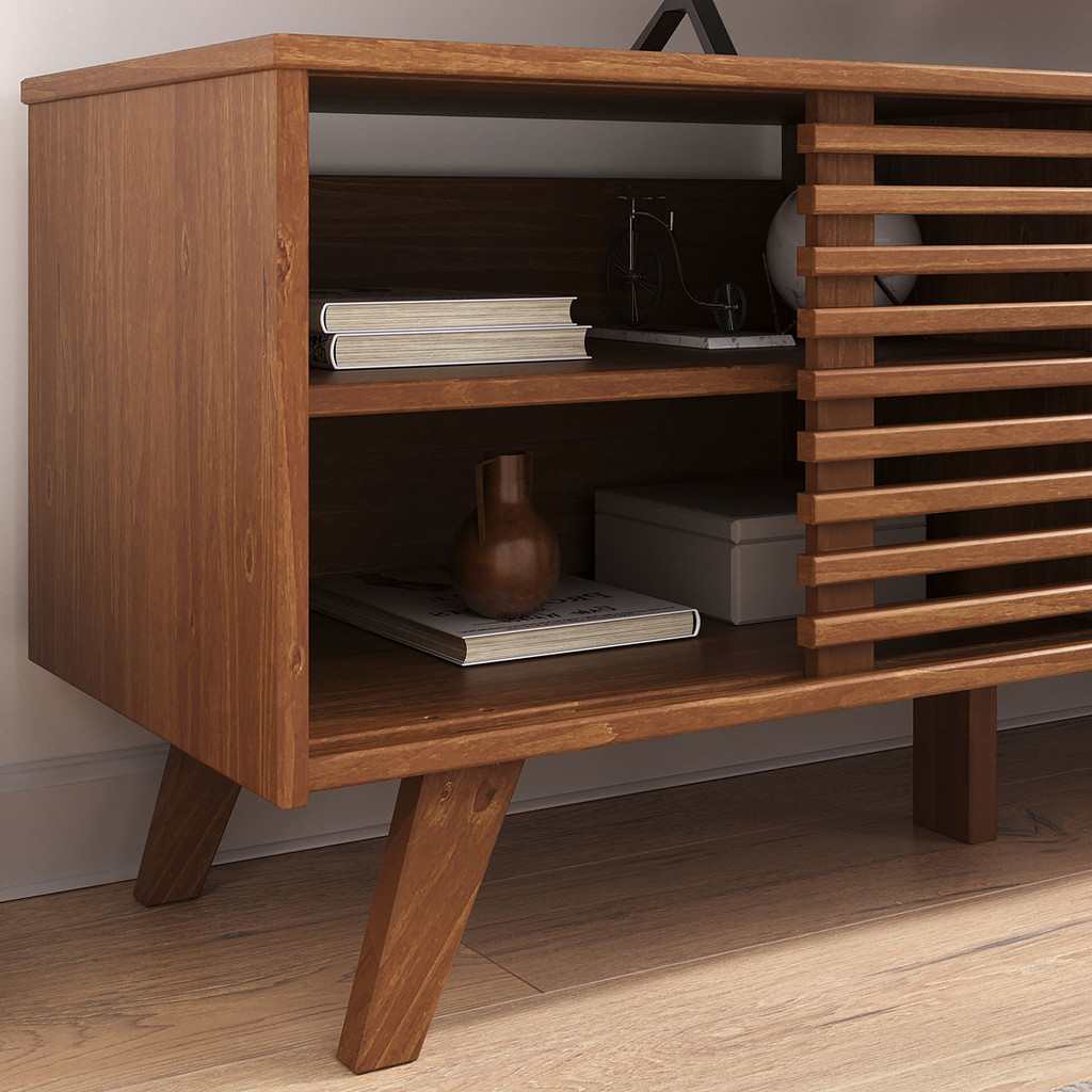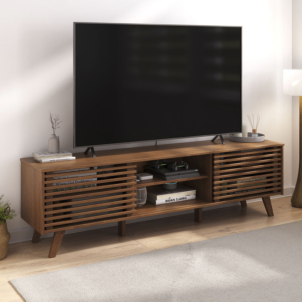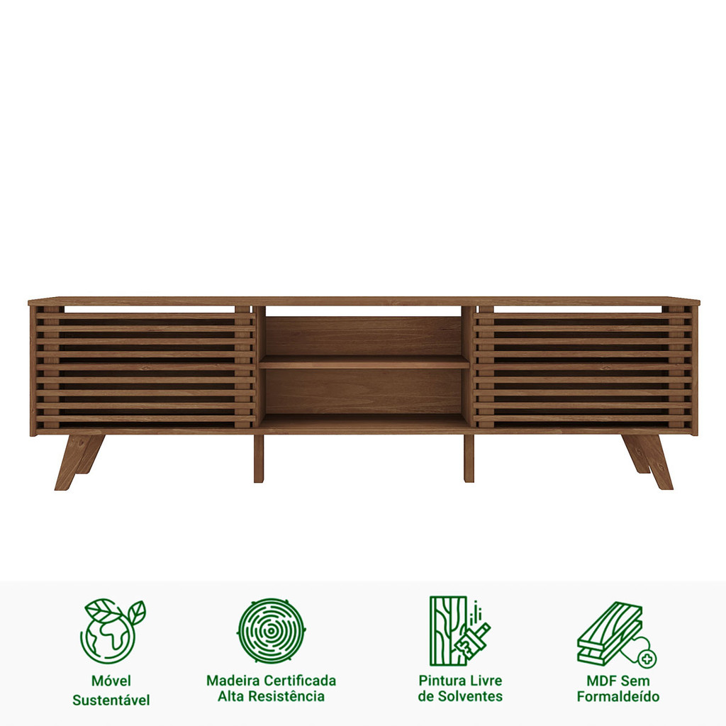 Rack Ripado Sala TV 75 Bancada Madeira 2 Portas Castanho Rian